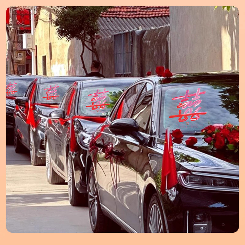 ✅웨딩 자동차 행복 단어 자동차 스티커 팀 장식 꽃 환영 자동차 머리 꽃 결혼식 전체 세트 레이아웃 행복 단어 스티커 문 정전기스토어 가기