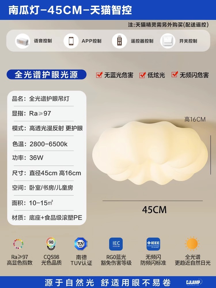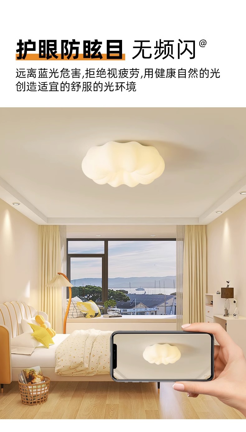 호박 침실 램프 전체 스펙트럼 눈 보호 푸리 천장 램프 크림 Fengyundo 램프 연구 현대 간단한 방 램프