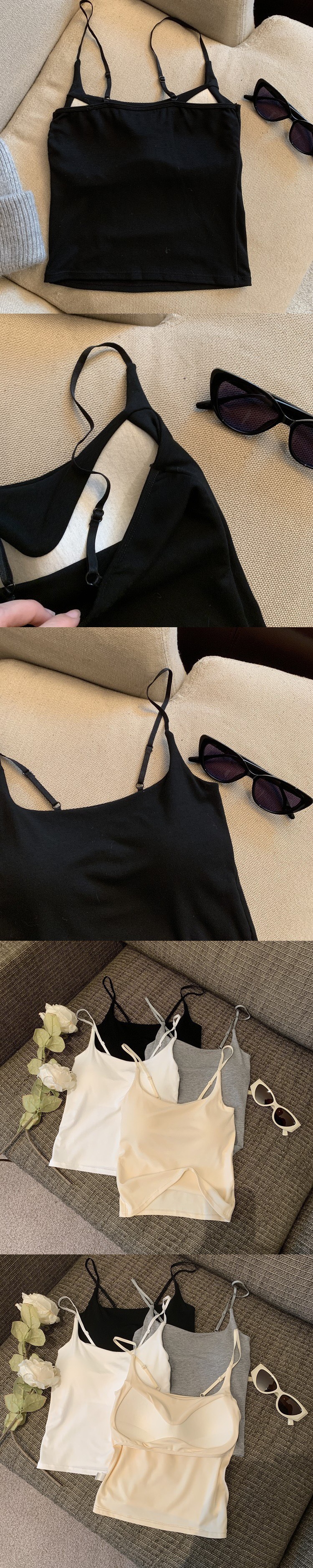 2025 면 카미 솔 간단한 원피스 고정 컵 가슴 패드 외부 착용 내부 튜브 탑스토어 가기