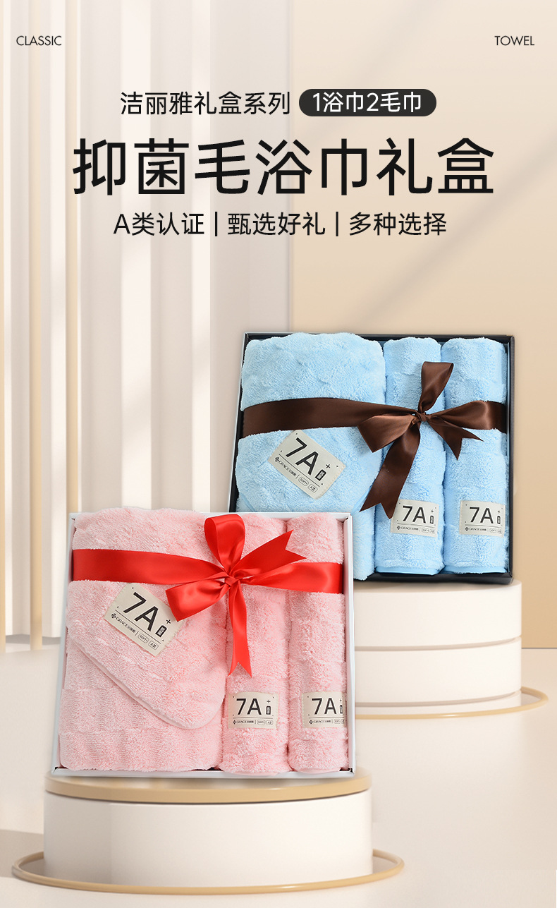 Jielia Coral 양털 항균 3 조각 선물 상자 목욕 타월 선물 상자 Jielia 목욕 타월 선물 상자스토어 가기