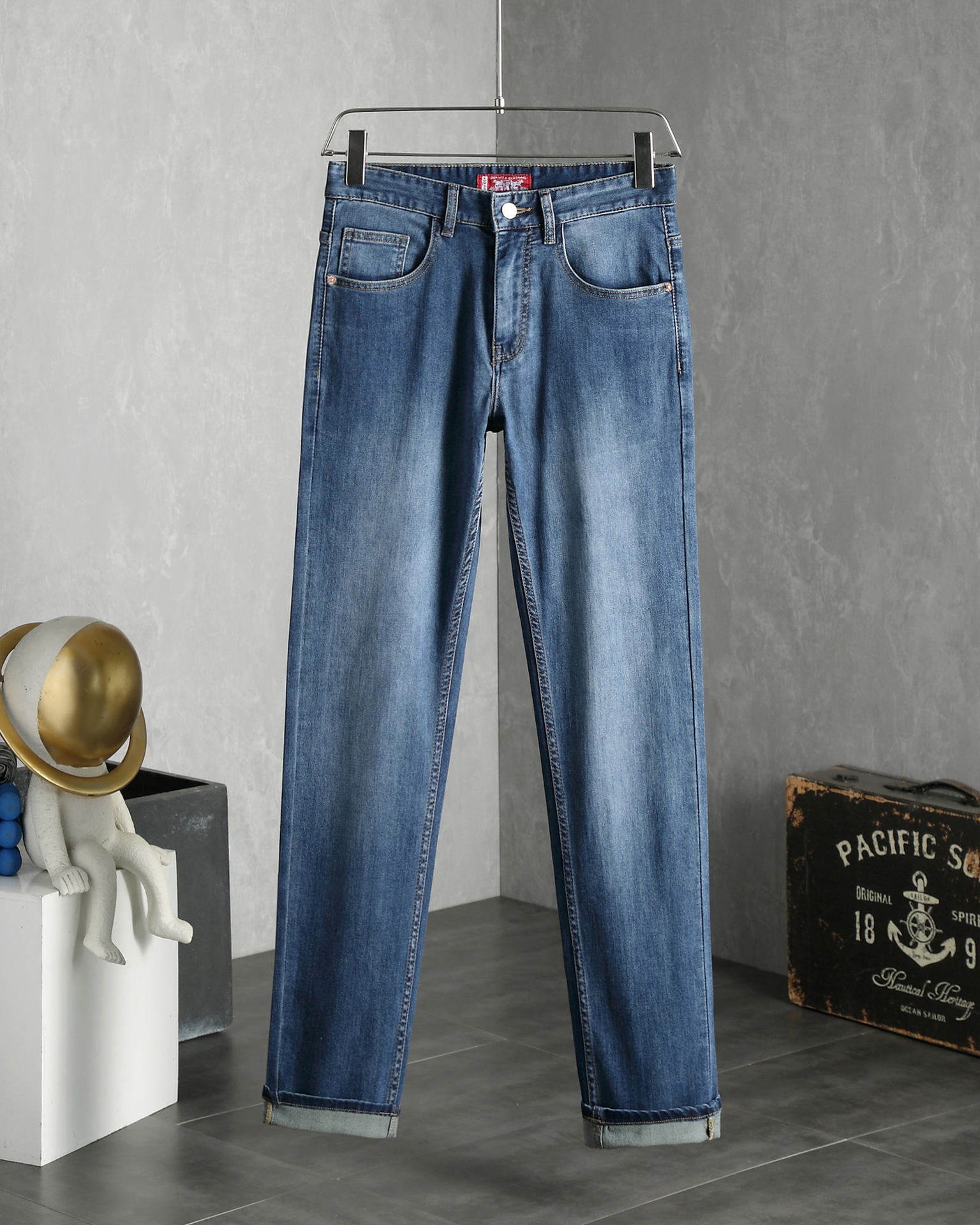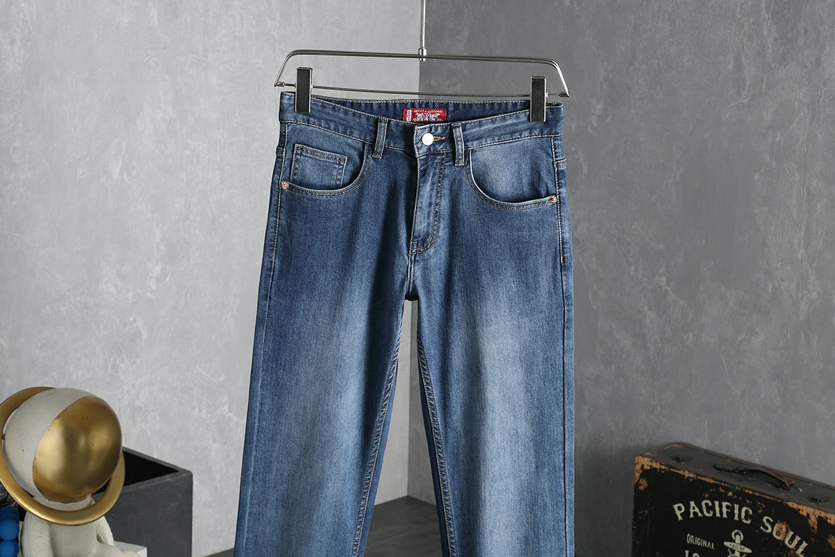 봄 여름 신상 고급스러운 신축성 있는 구김 방지 정장 바지, 스트레이트 핏 남성 바지, 비즈니스 바지, 남성 청바지, 고급스토어 가기