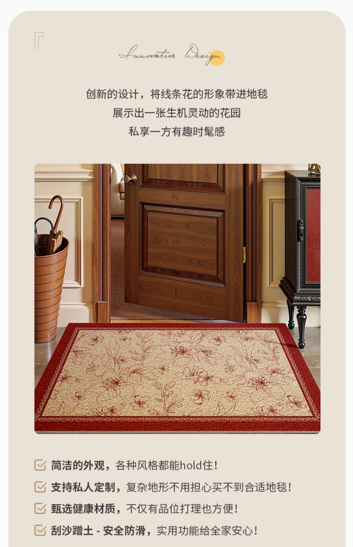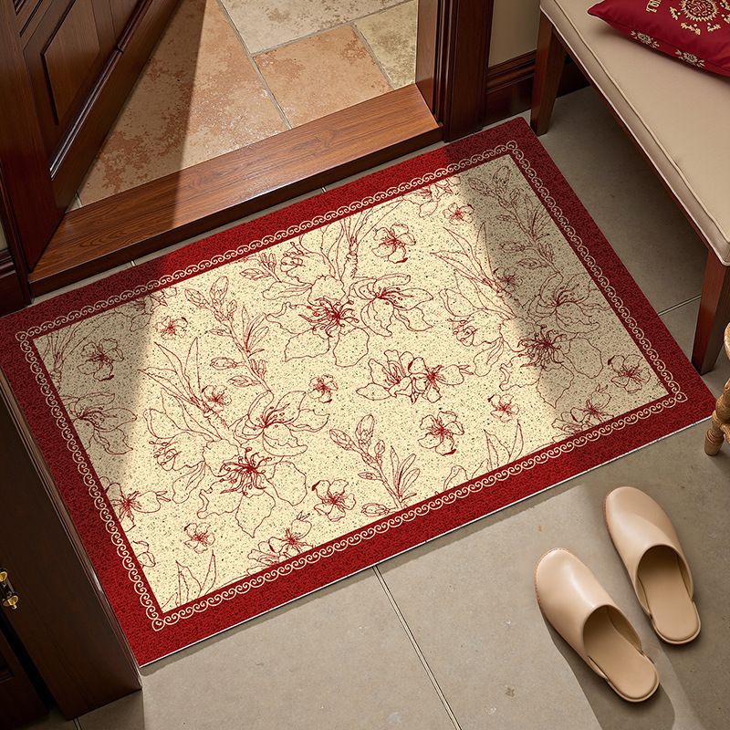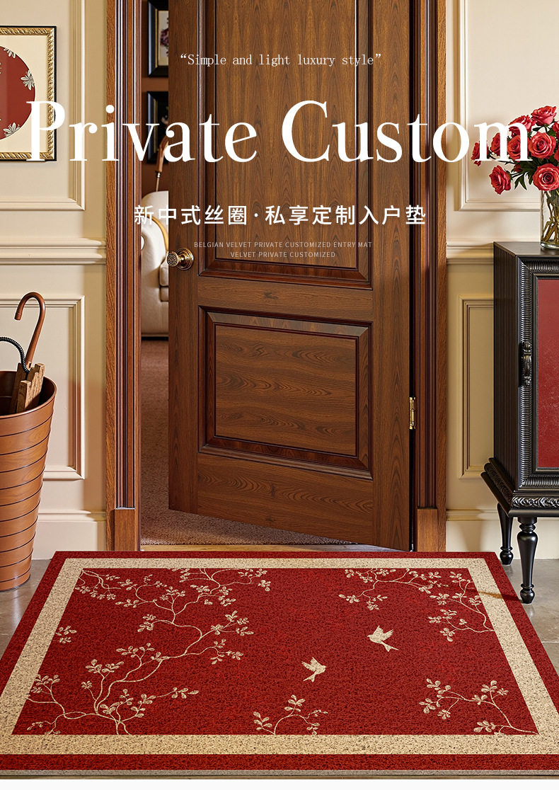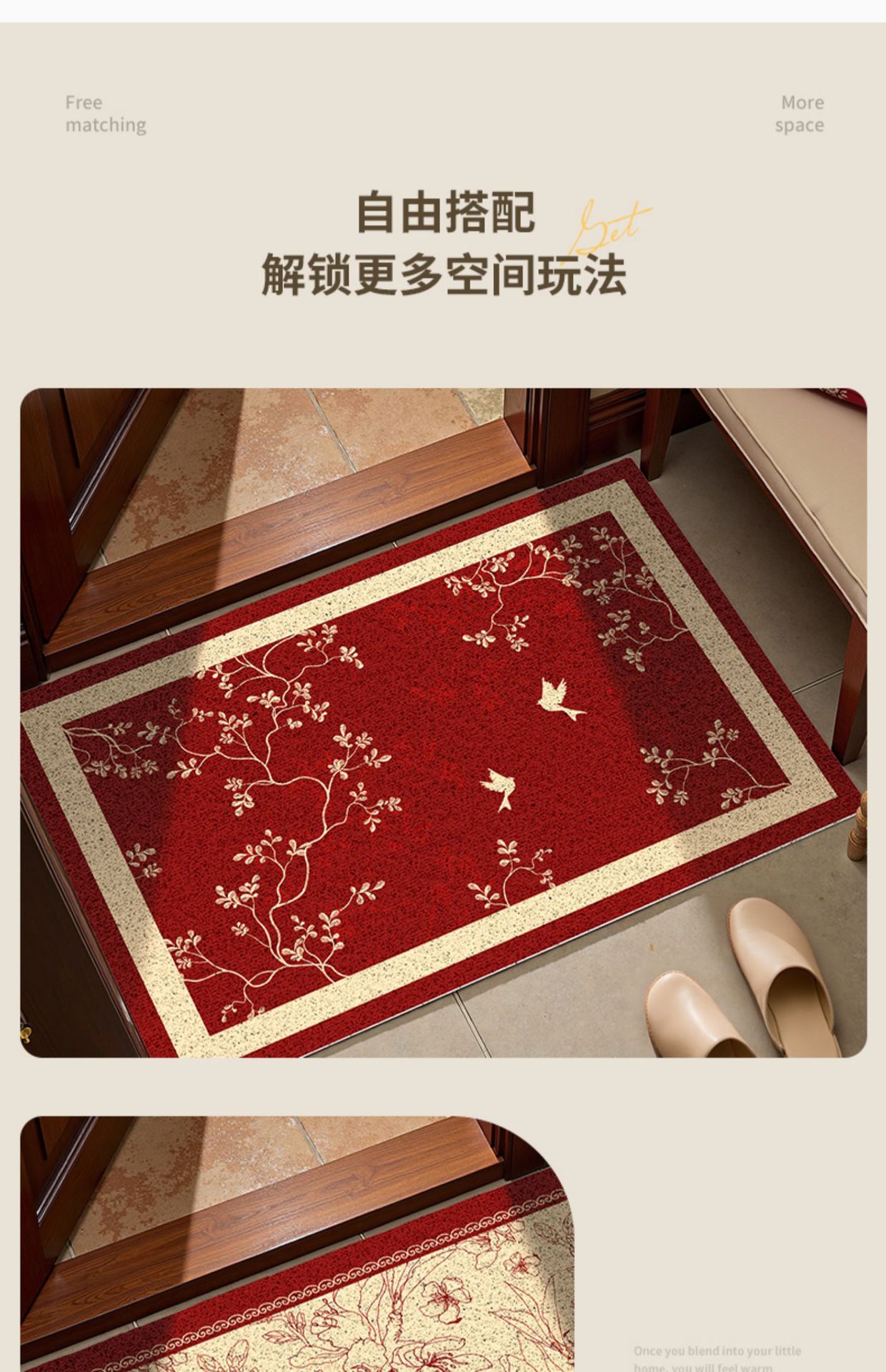 새로운 중국 스타일 입구 문 매트 레드 실크 링 문 매트 입구 문 웨딩 매트 먼지 방지 컷 테이블 카펫스토어 가기