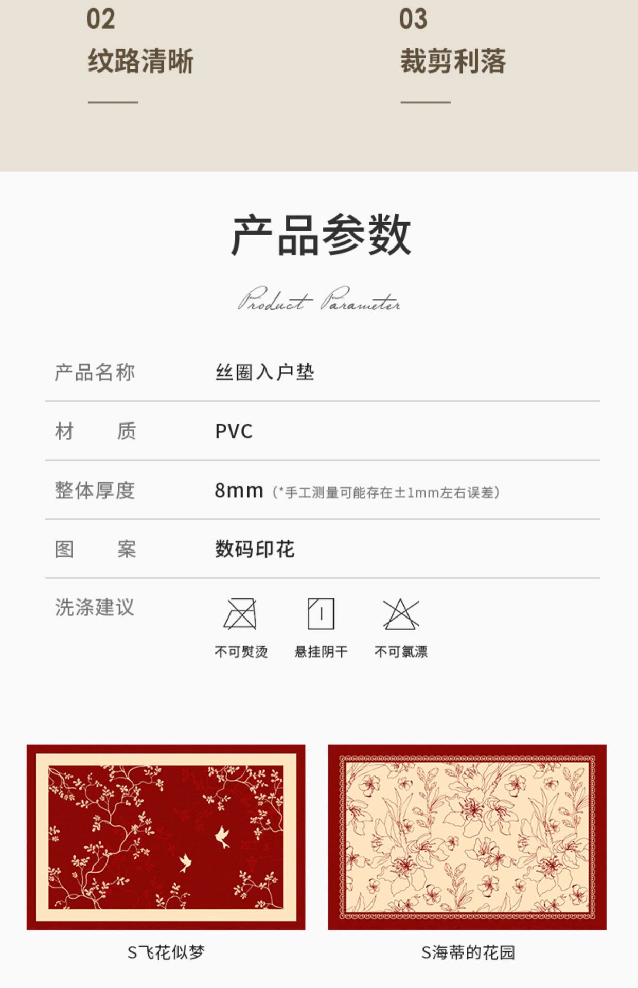 새로운 중국 스타일 입구 문 매트 레드 실크 링 문 매트 입구 문 웨딩 매트 먼지 방지 컷 테이블 카펫