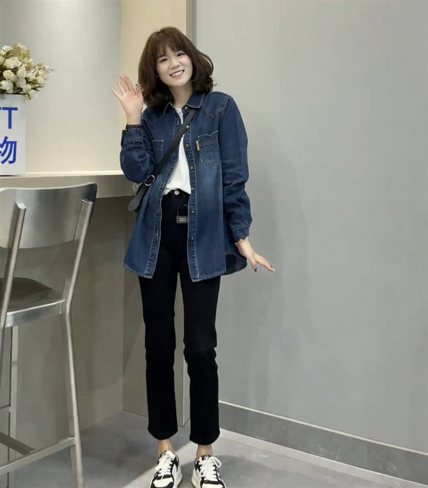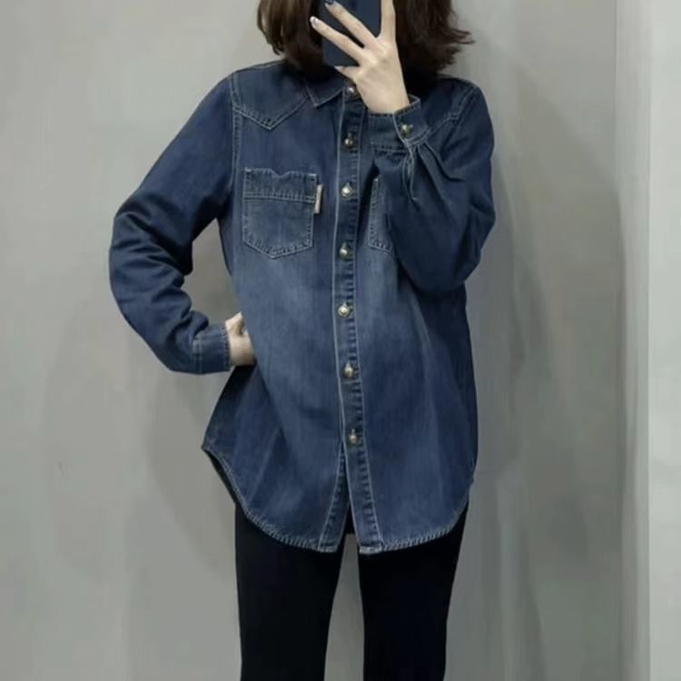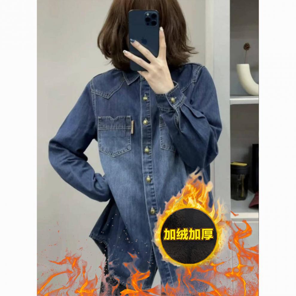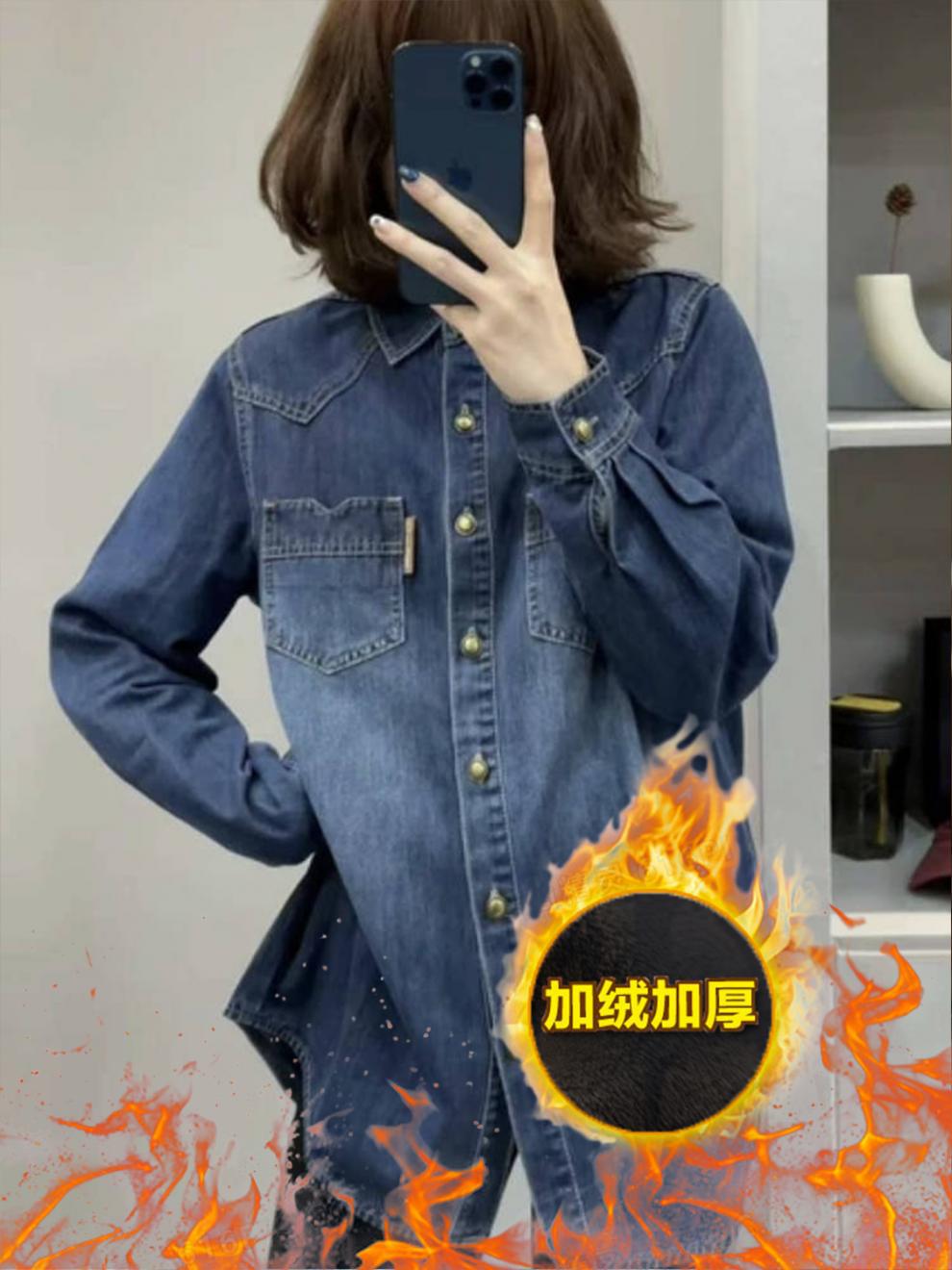 Shanli Dadi 기모 데님 셔츠 여성의 가을과 겨울 새로운 느슨한 디자인 센스 내부 레이아웃 캐주얼 두꺼운 탑스토어 가기