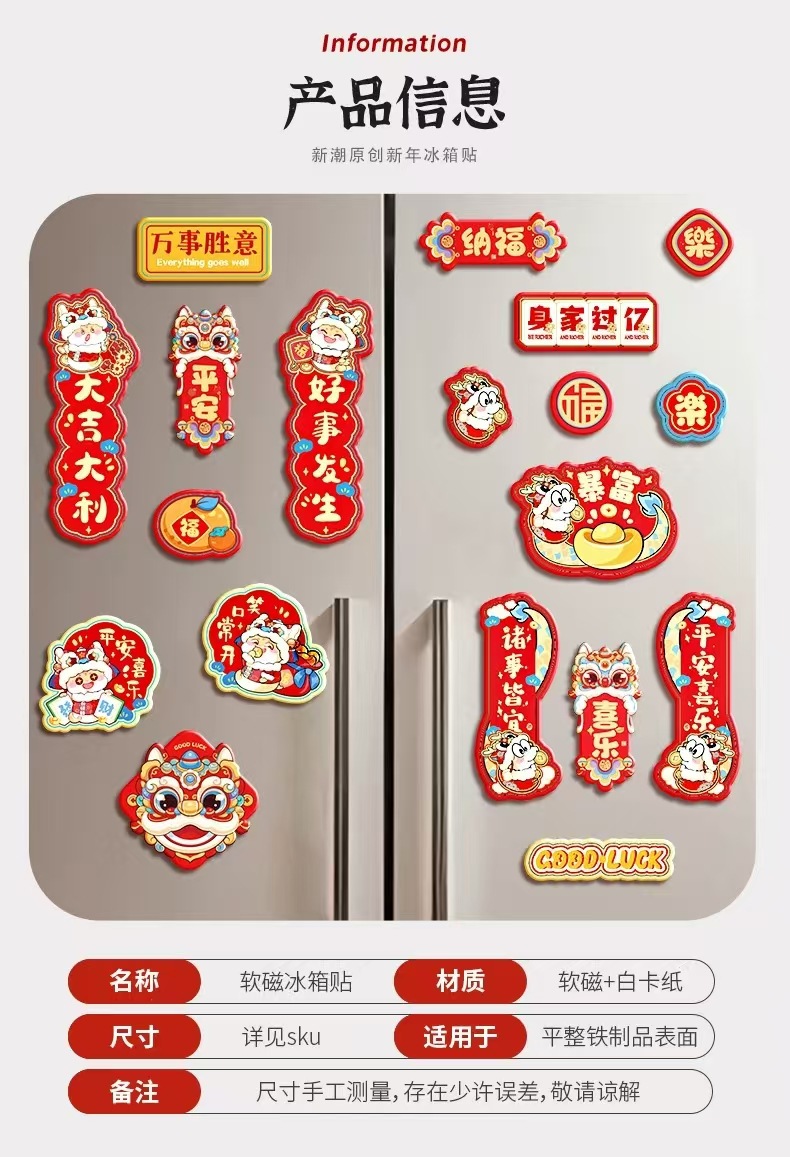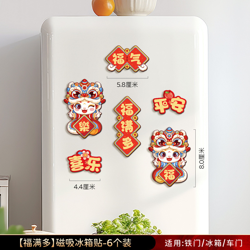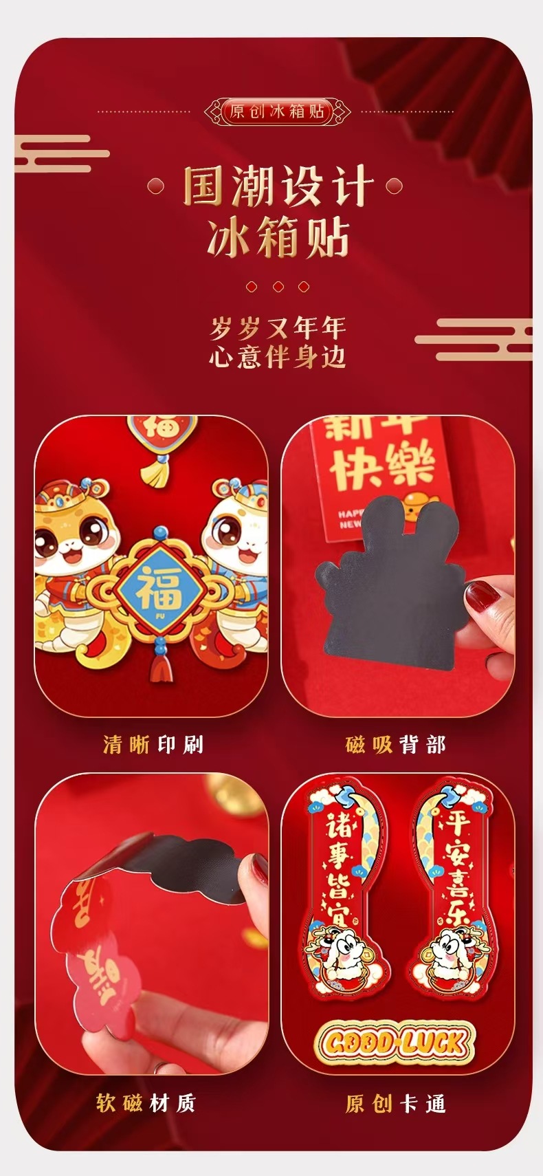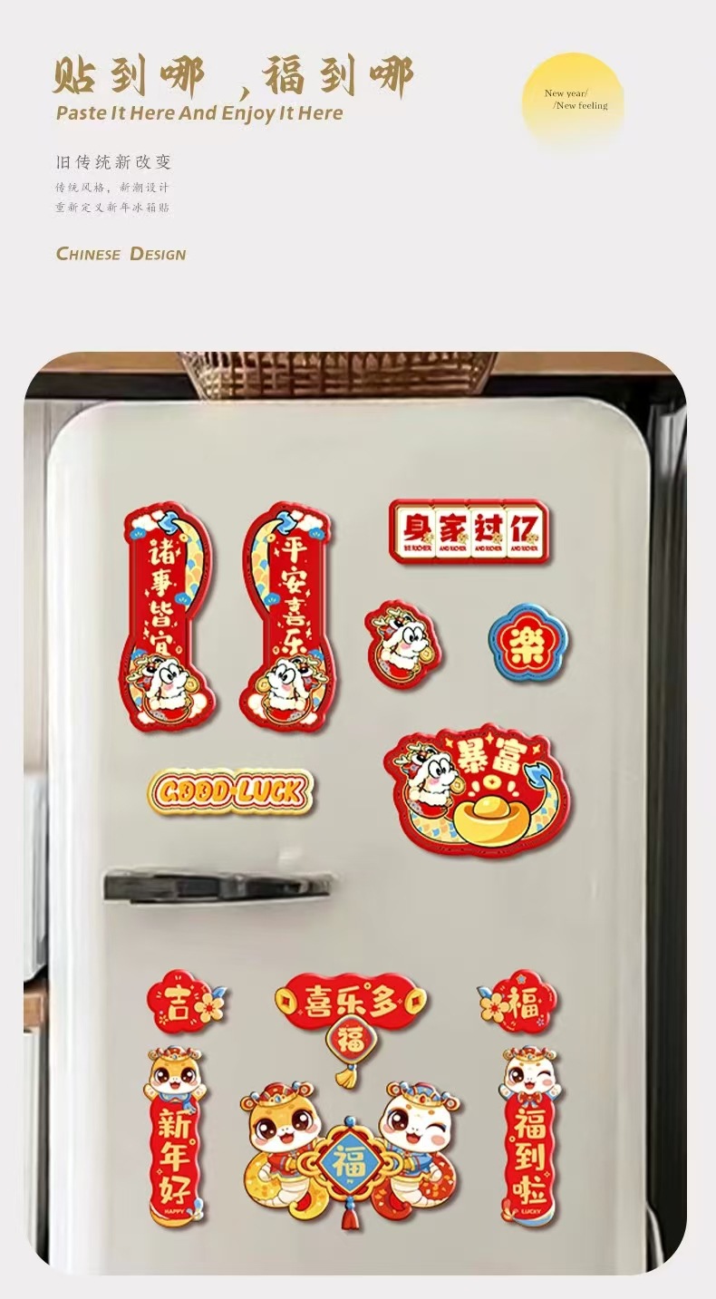 마그네틱 커플 2025 새해 뱀 새해 장식 축복 단어 문 스티커 봄 축제 집 접착제가없는 자기 자석 돌 도매