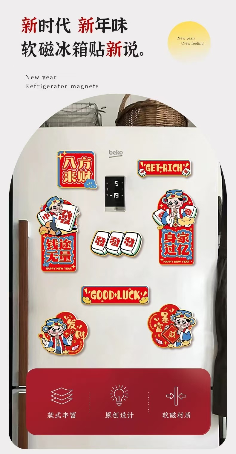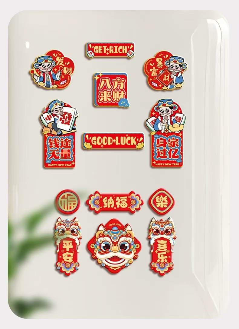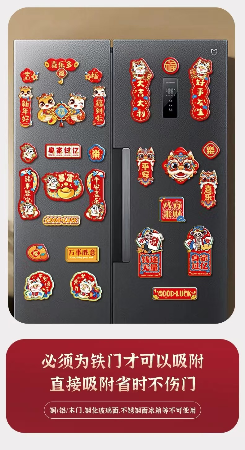 마그네틱 커플 2025 새해 뱀 새해 장식 축복 단어 문 스티커 봄 축제 집 접착제가없는 자기 자석 돌 도매