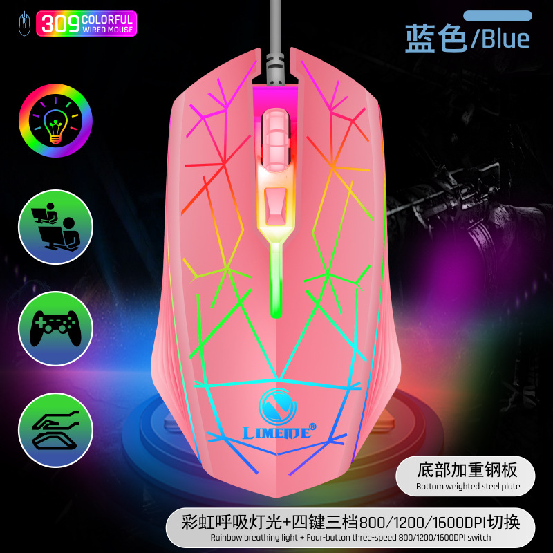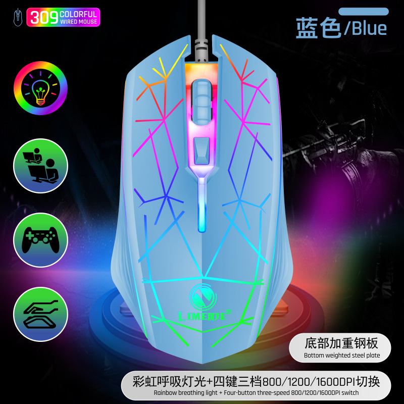 리튬 마그네슘 309 유선 USB 발광 마우스 철 바닥 무게 게임 컴퓨터 마우스 제조 업체 도매스토어 가기