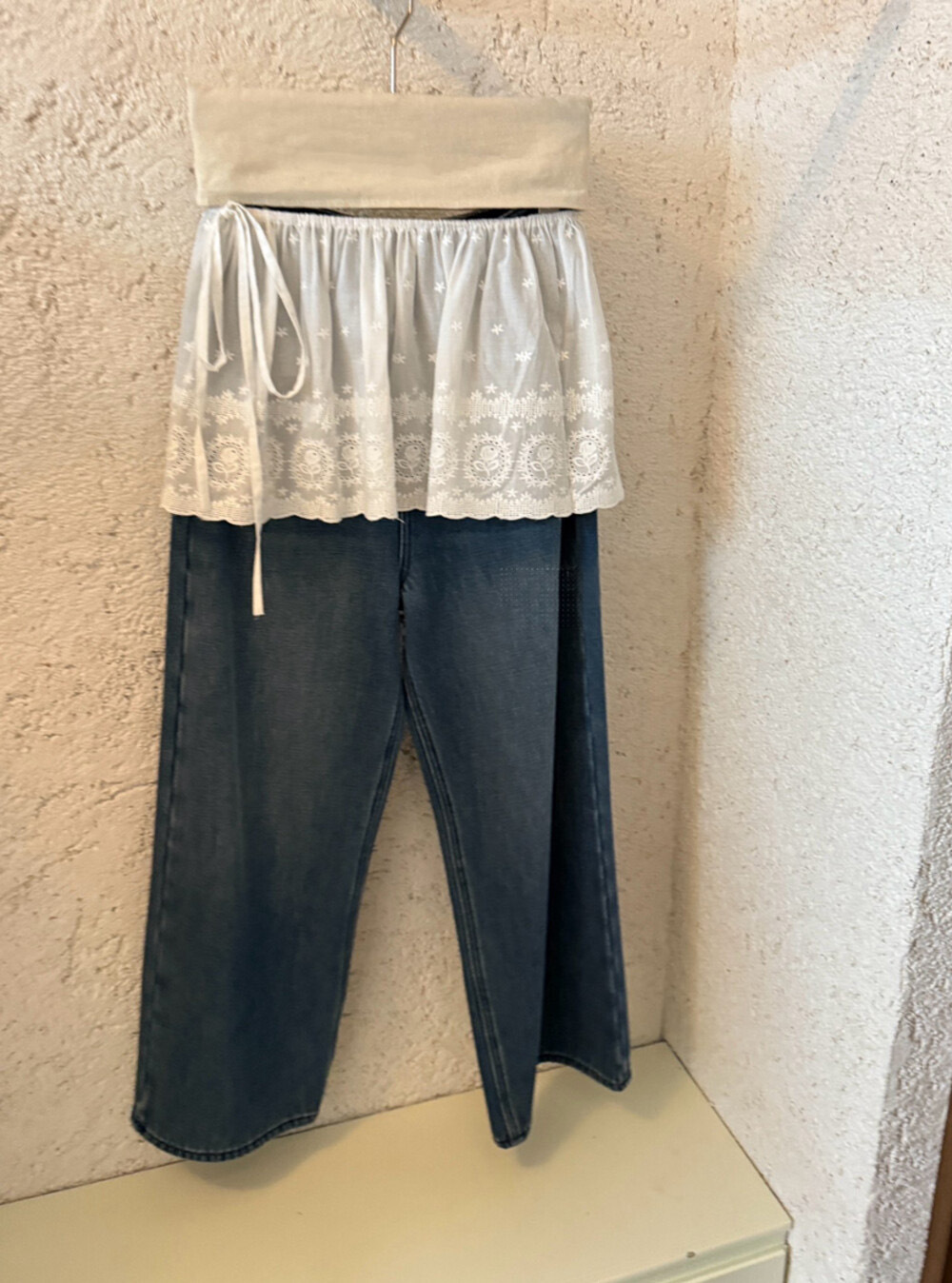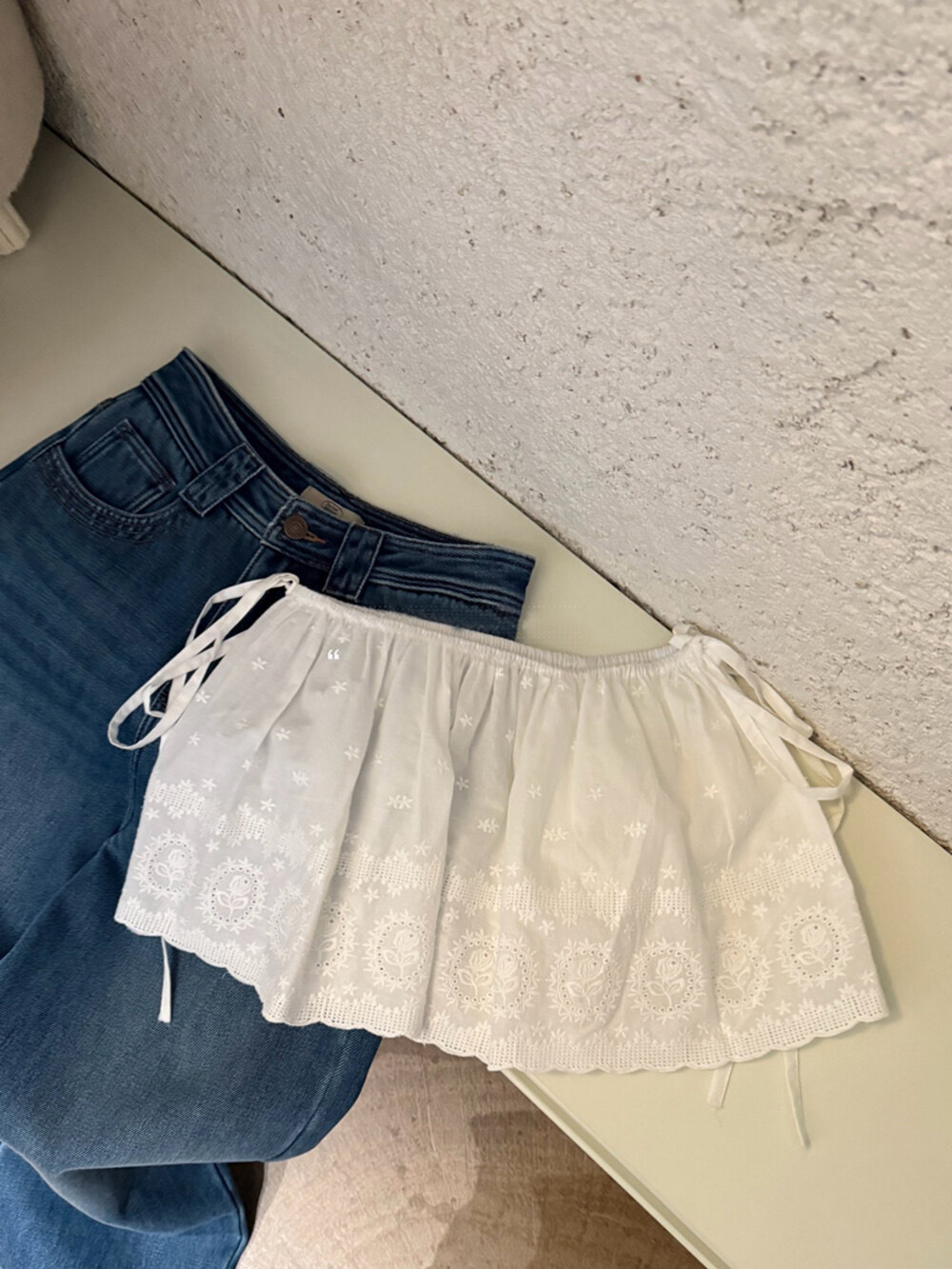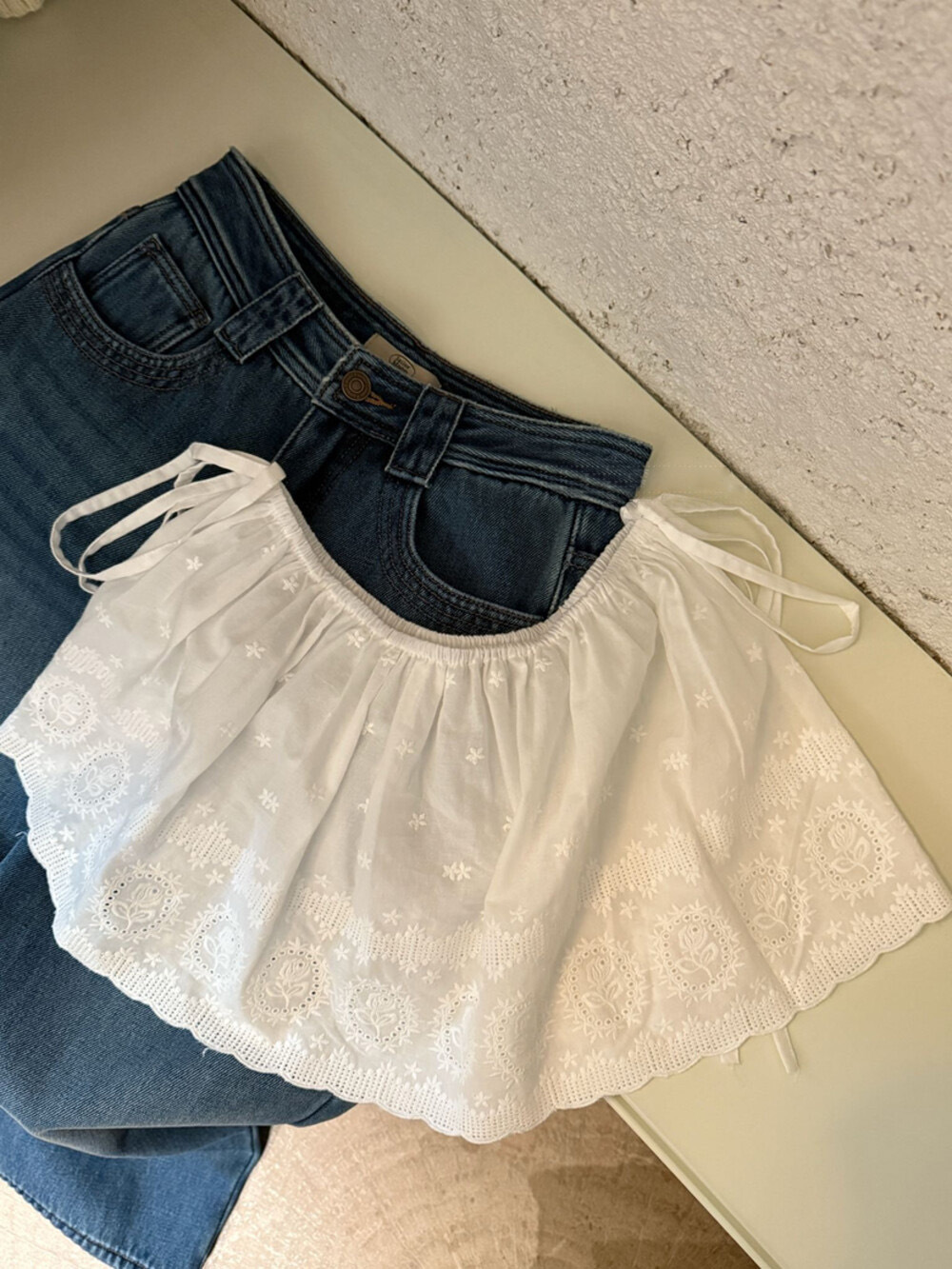 달콤한 올 매치 레이스 패트 커튼 여자 스택 짧은 치마 봄 새로운 한국 스타일 세련된 원피스 레이스 업 하프 길이 스커트