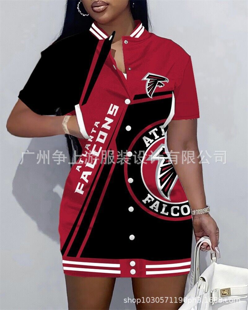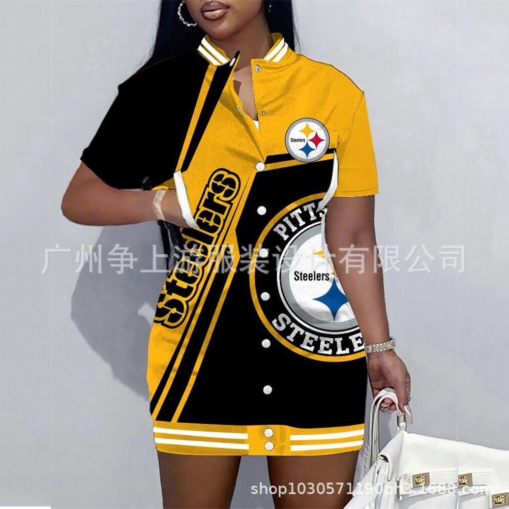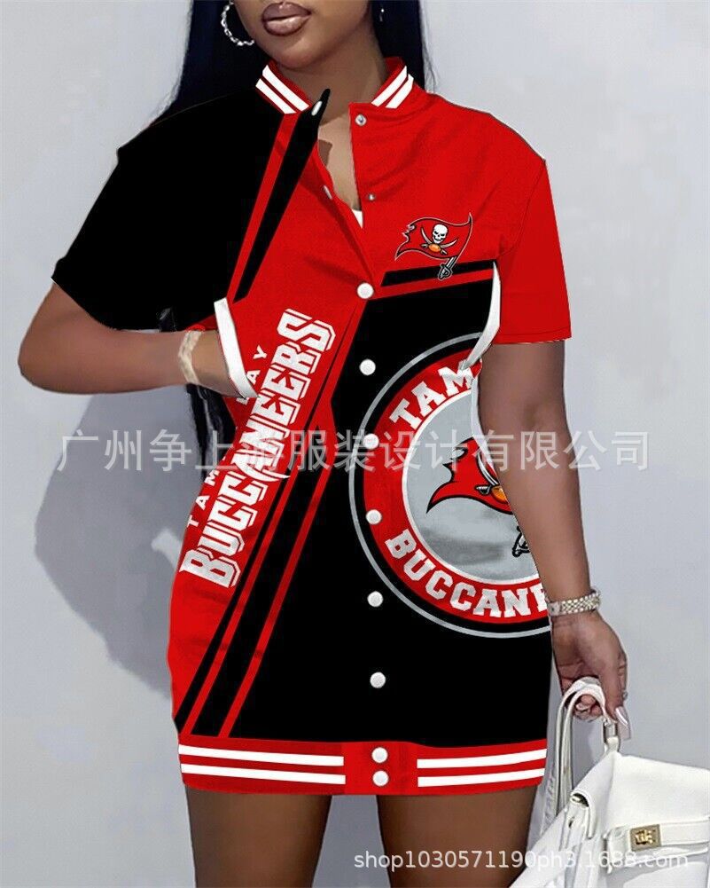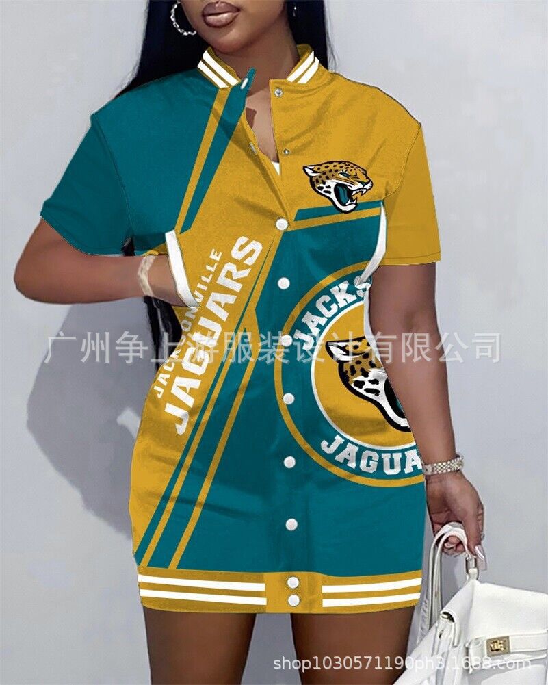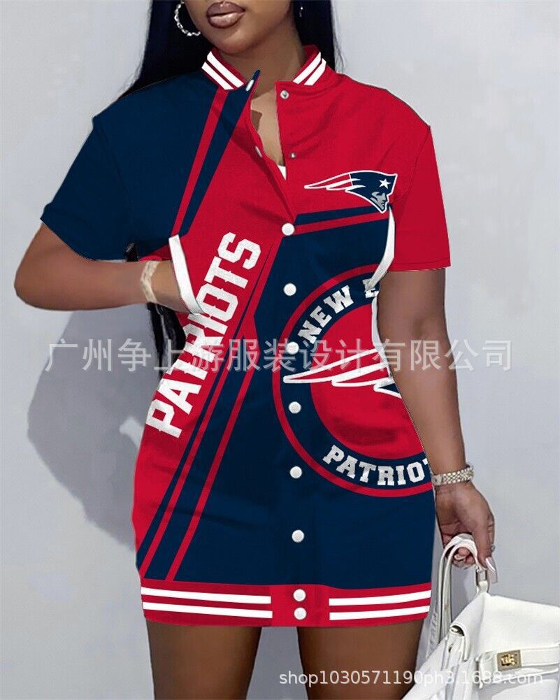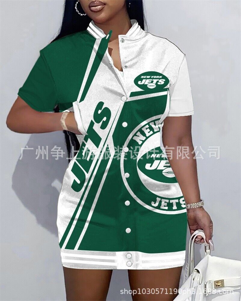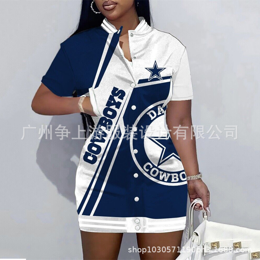 유럽과 미국의 대외 무역 여자 인쇄 NFL 재킷 여자 반팔 슬림 핏 캐주얼 해적 원피스 긴 여자 축구 원피스스토어 가기
