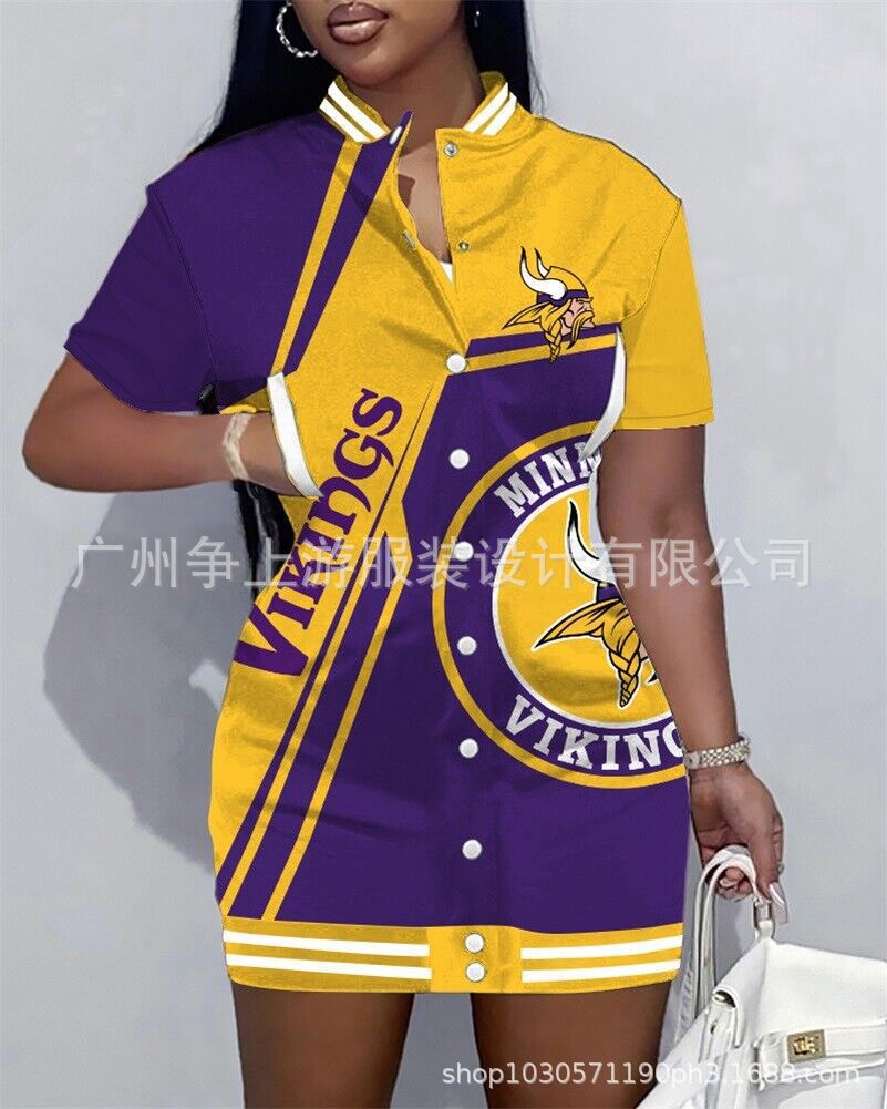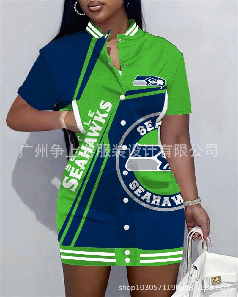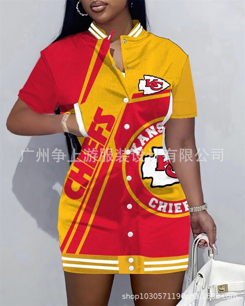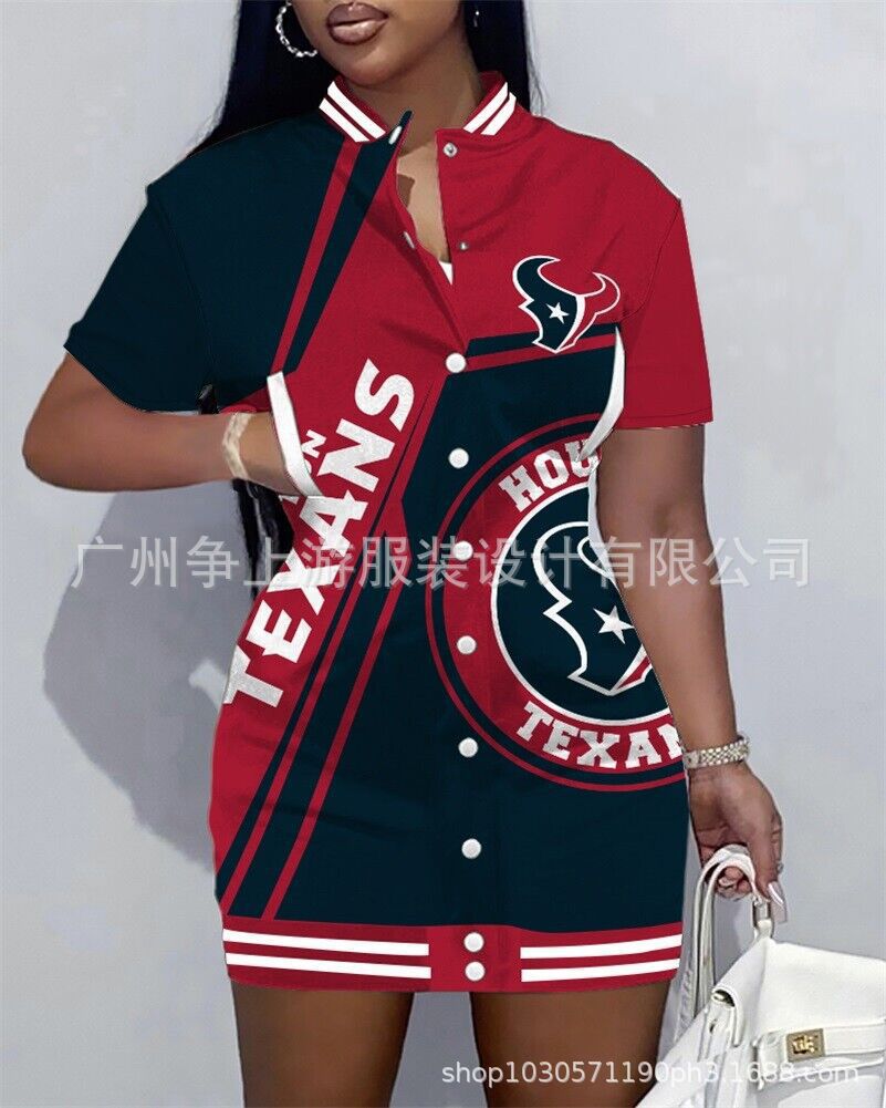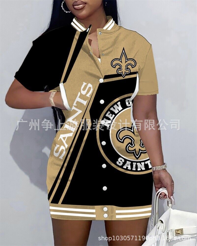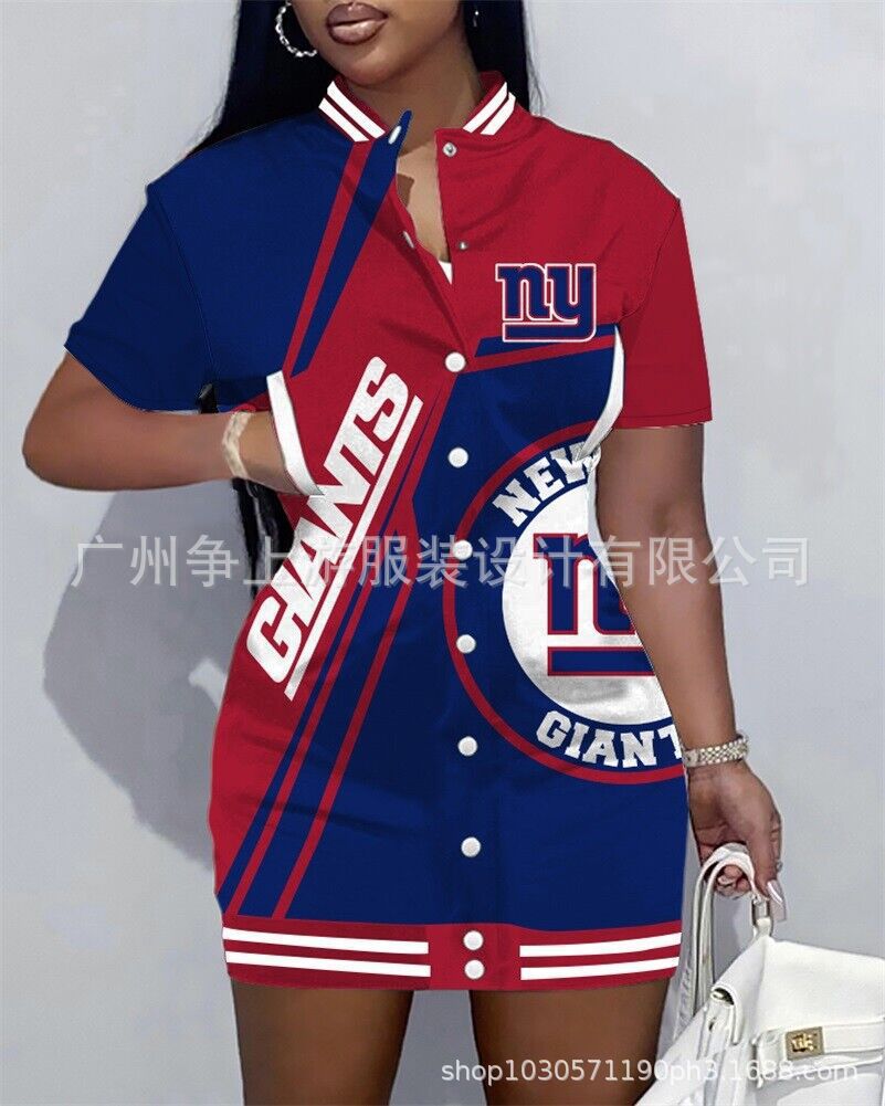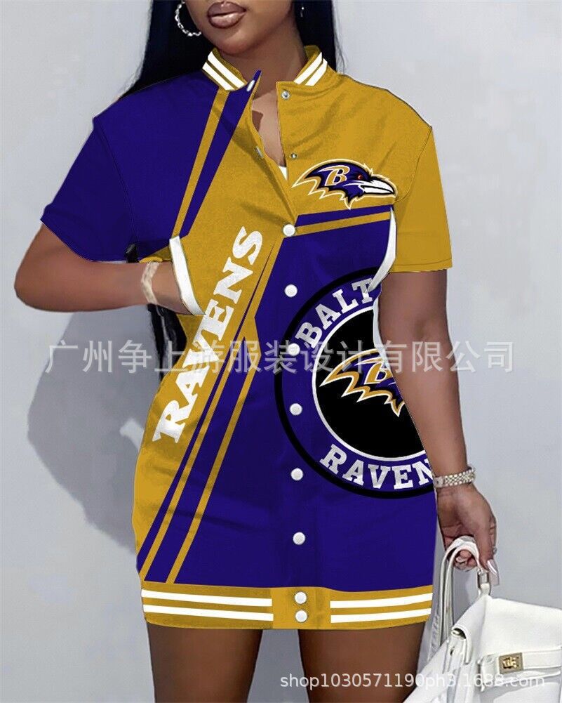 유럽과 미국의 대외 무역 여자 인쇄 NFL 재킷 여자 반팔 슬림 핏 캐주얼 해적 원피스 긴 여자 축구 원피스스토어 가기
