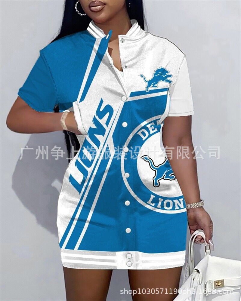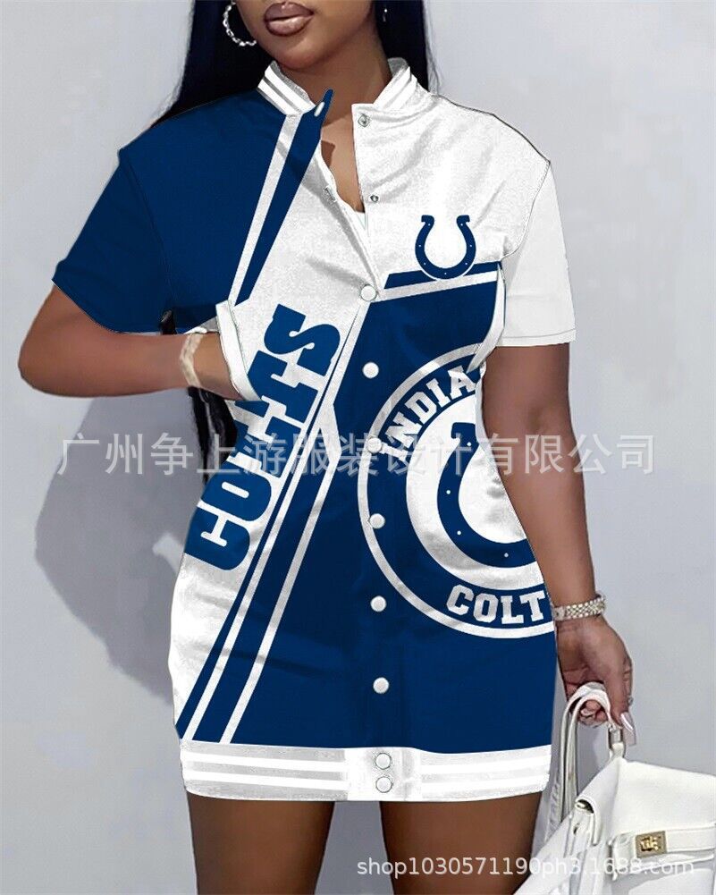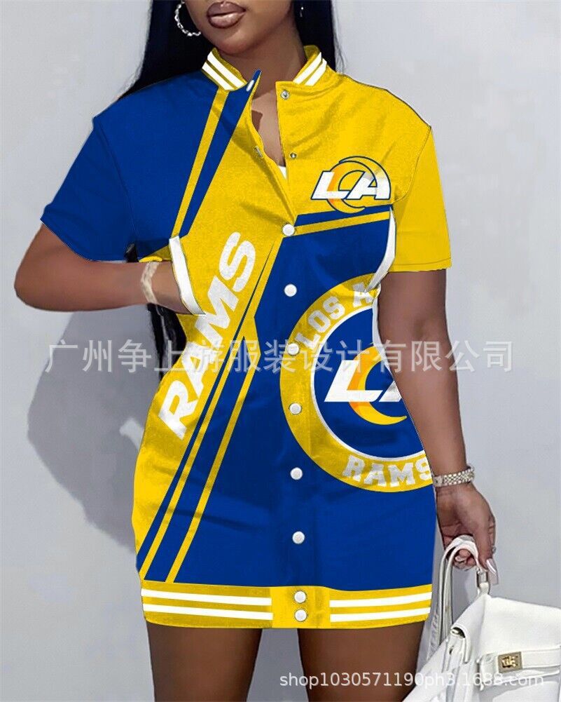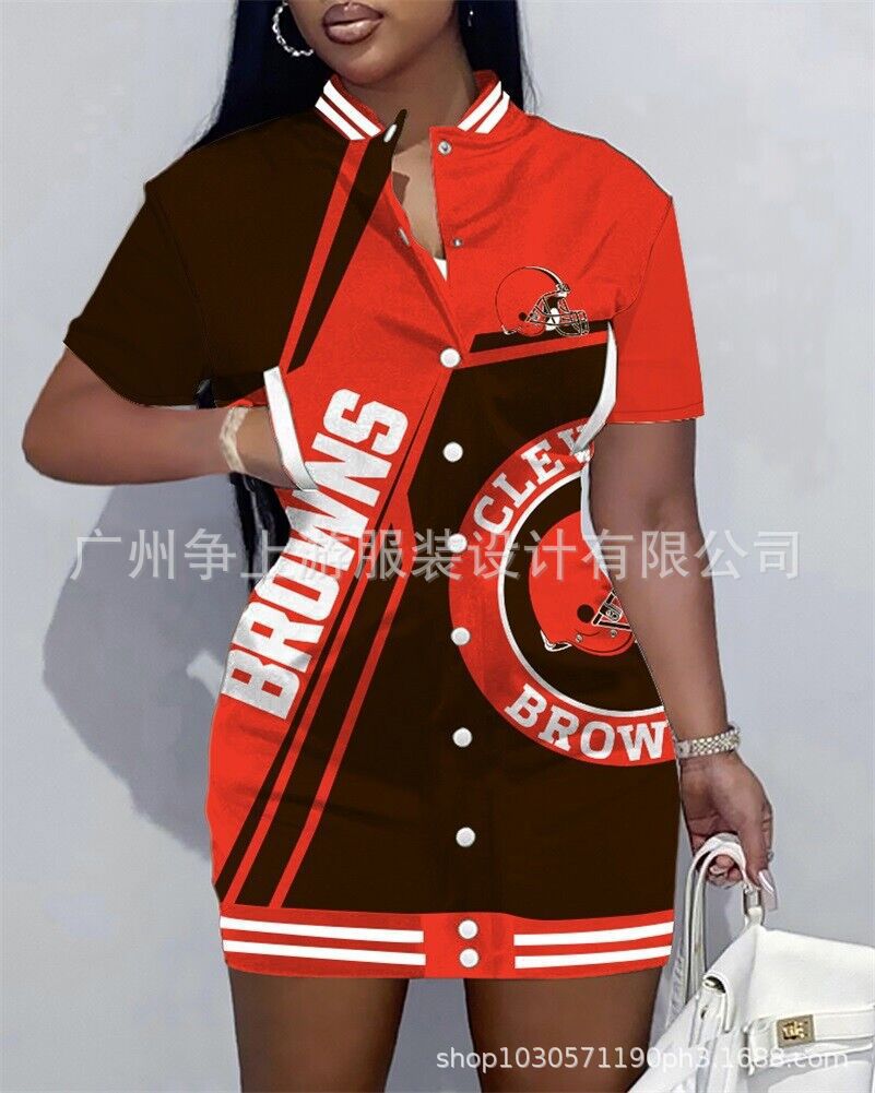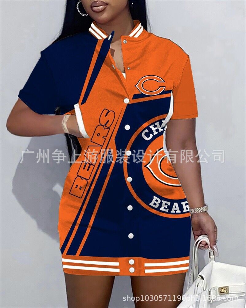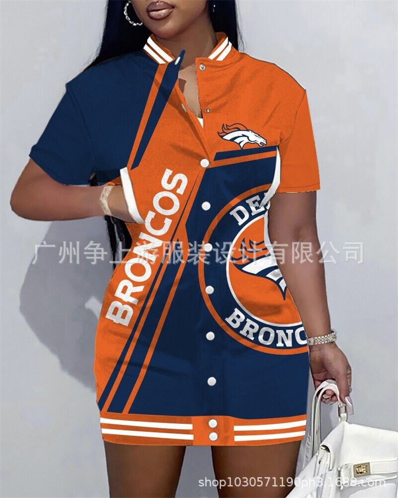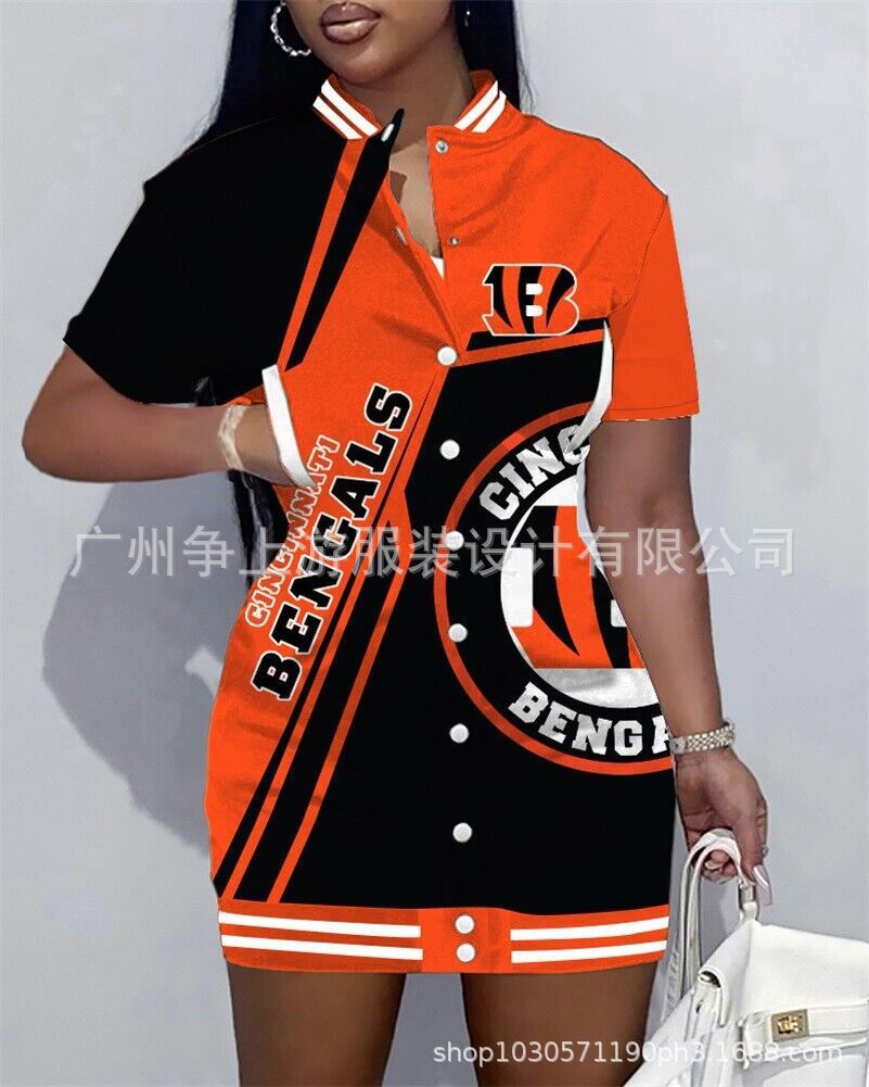 유럽과 미국의 대외 무역 여자 인쇄 NFL 재킷 여자 반팔 슬림 핏 캐주얼 해적 원피스 긴 여자 축구 원피스스토어 가기
