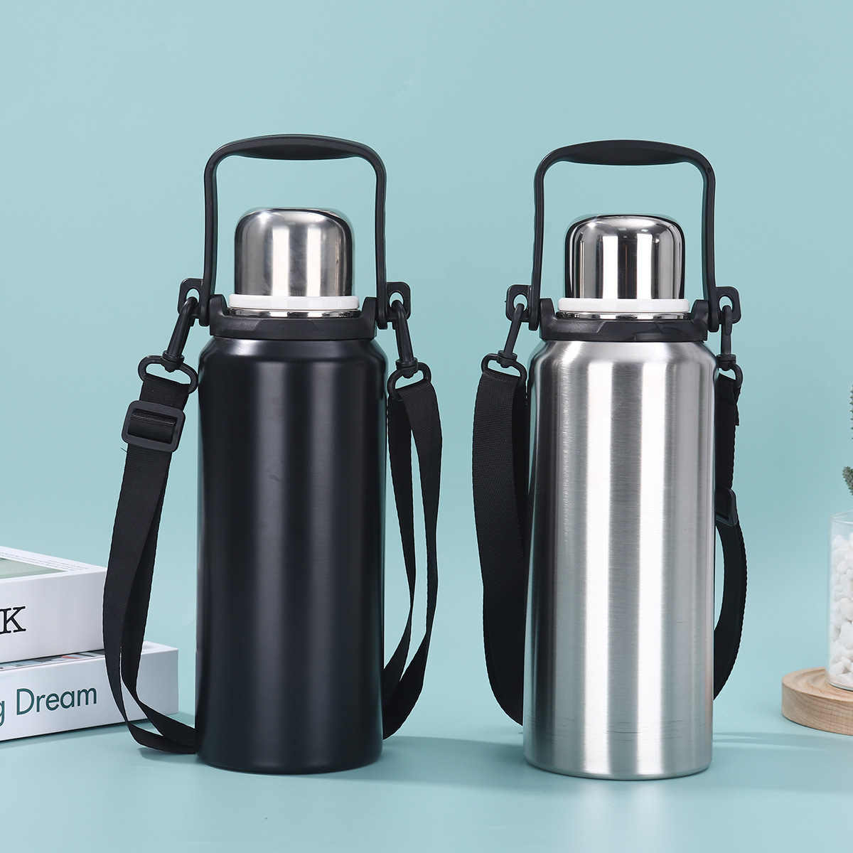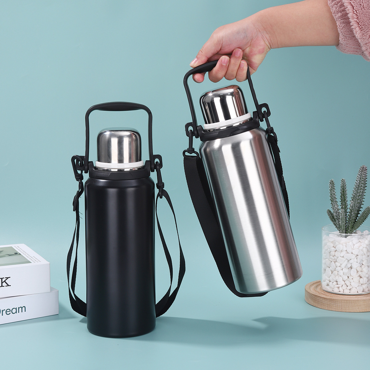 새로운 대용량 보온병 병 스트랩 휴대용 등산 주전자 316 스테인레스 스틸 총알 보온병