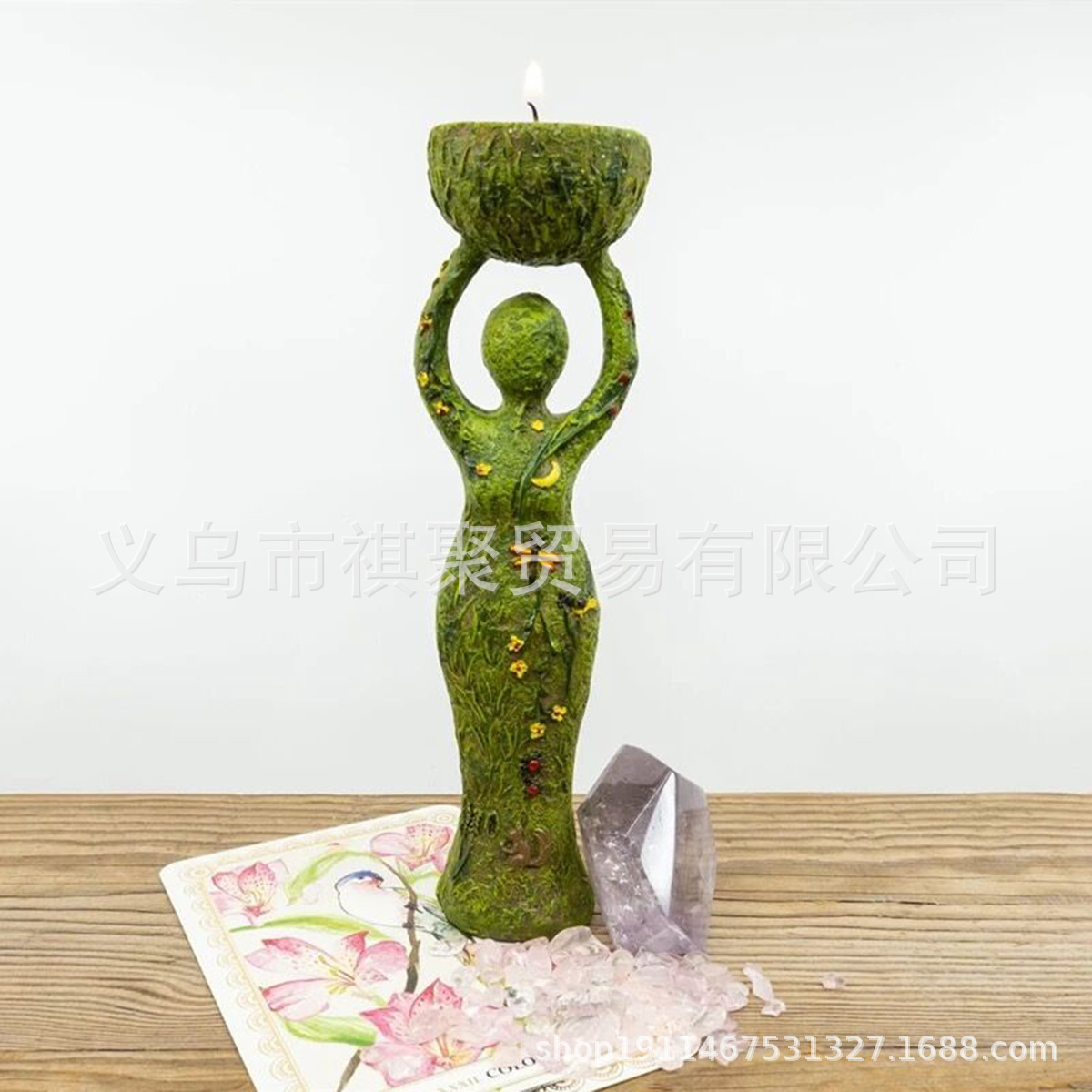 국경 간 무역 수지 공예품 지구 제단 녹색 여신 토템 차 램프 꽃 장식품