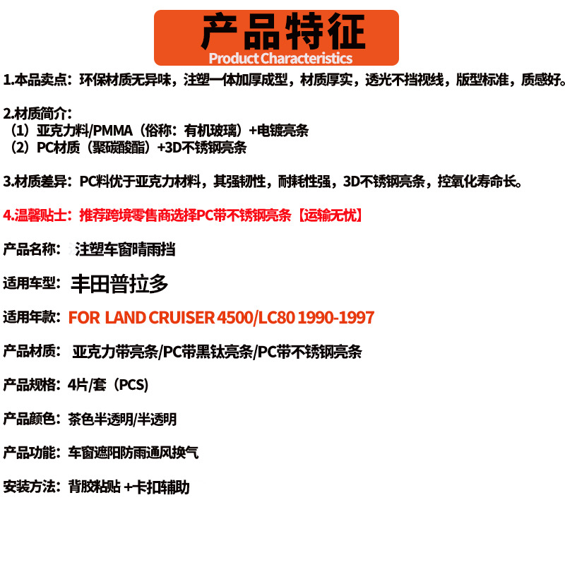 • Lc80 Fj80 1990-1995 PC(블랙 티타늄 브라이트 스트립 윈도우 레인 쉴드 포함)