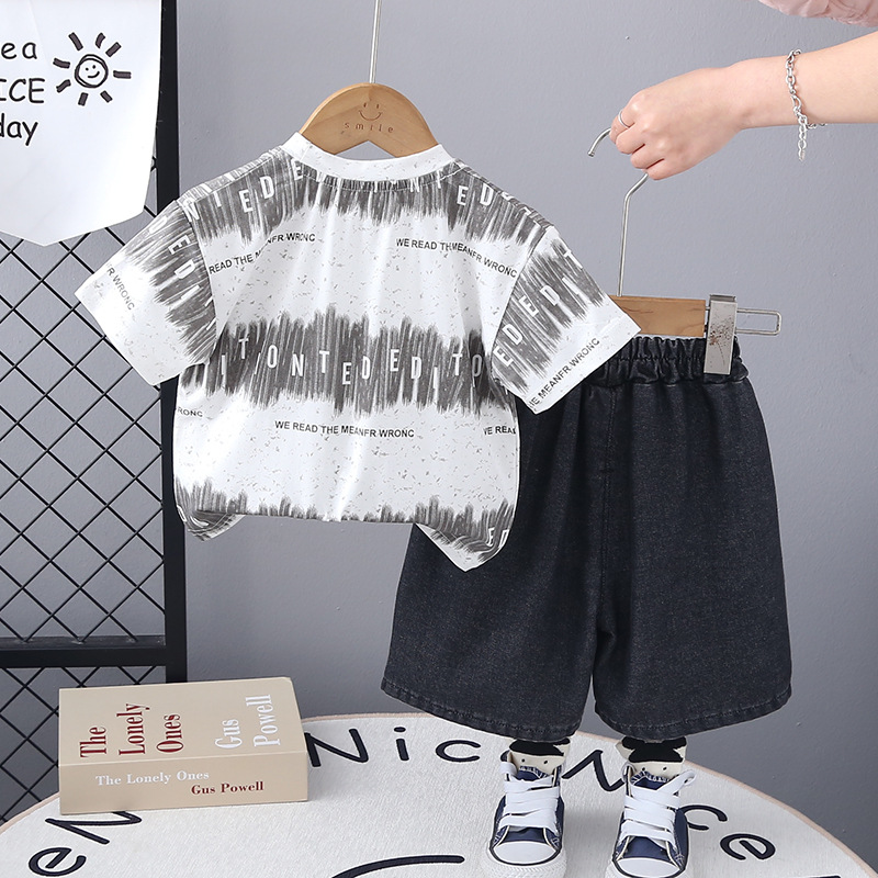 여름 소년 패션 반팔 세트 새로운 패션 세련된 어린이 와이드 스트립 반팔 투피스 유행 세트스토어 가기