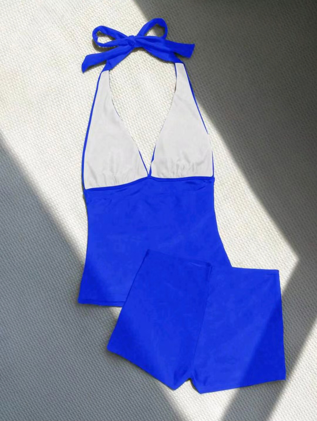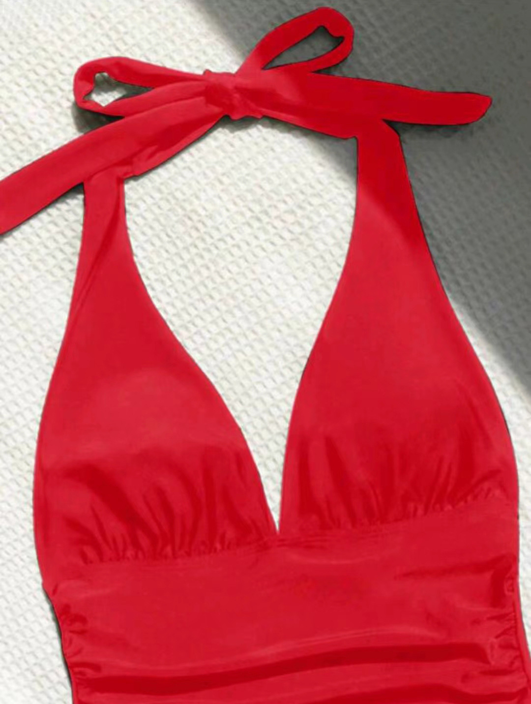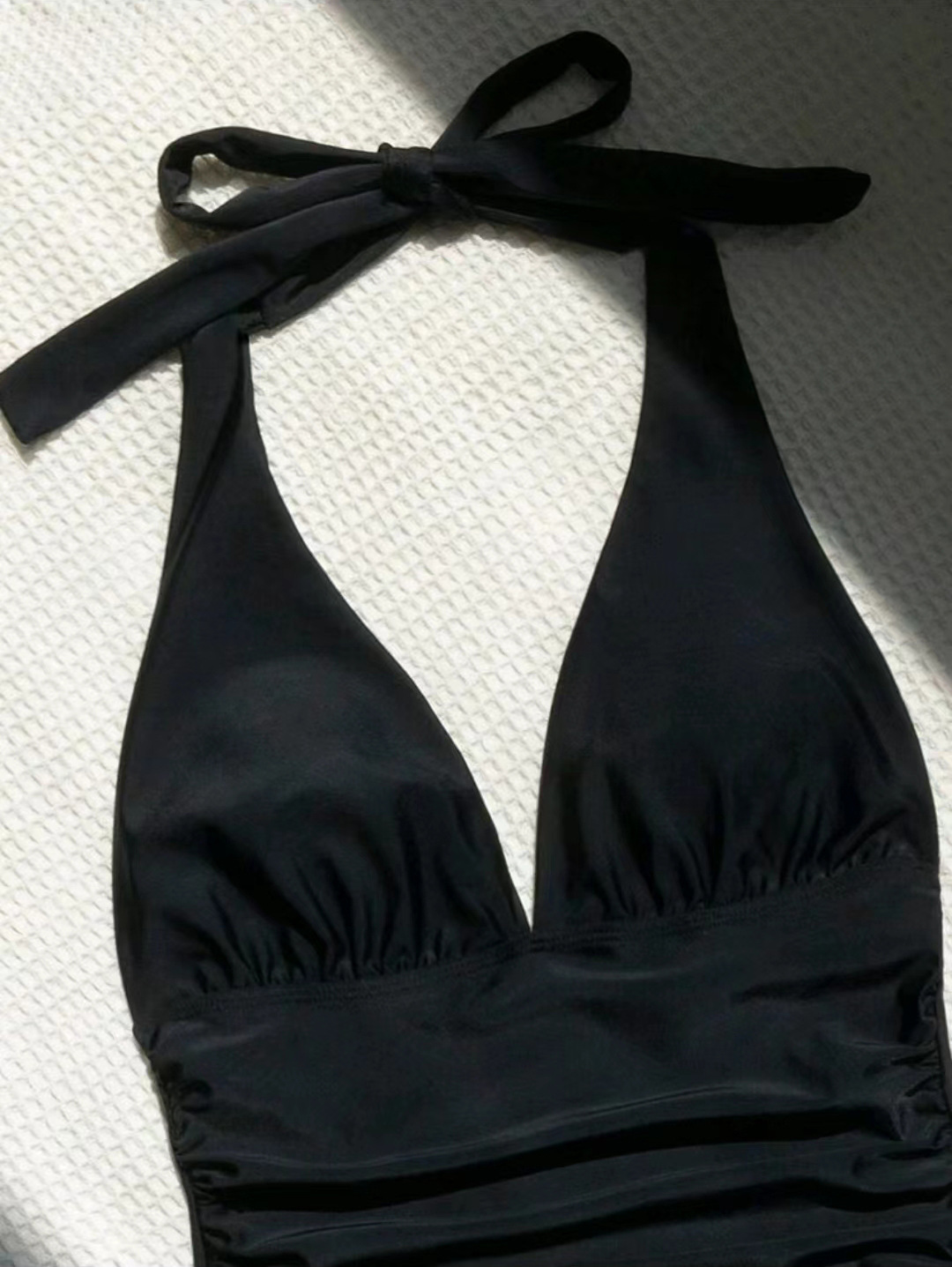 2025 국경 간 유럽 및 미국 대외 무역 새로운 수영복 솔리드 컬러 스플릿 하이 웨이스트 박스 목에 걸려있는 백리스 탄 키니 수영복