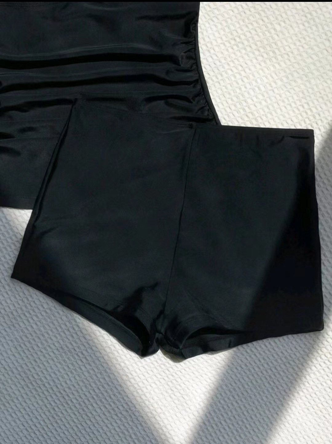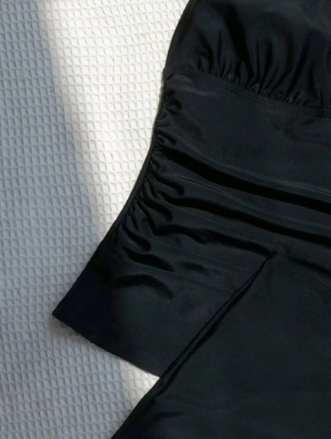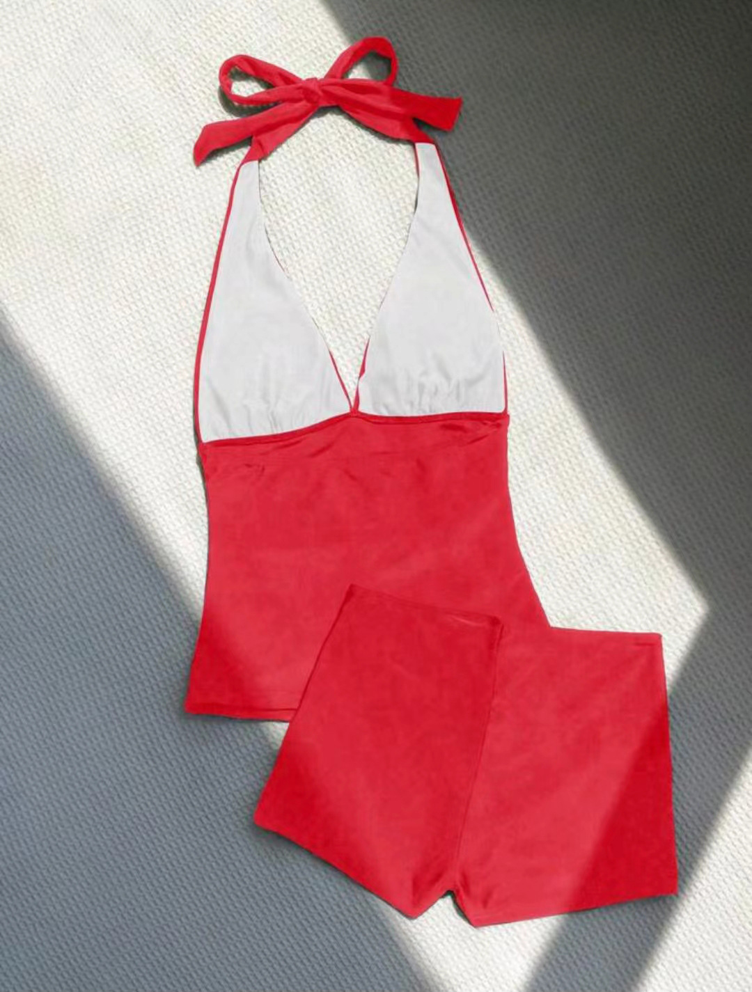 2025 국경 간 유럽 및 미국 대외 무역 새로운 수영복 솔리드 컬러 스플릿 하이 웨이스트 박스 목에 걸려있는 백리스 탄 키니 수영복