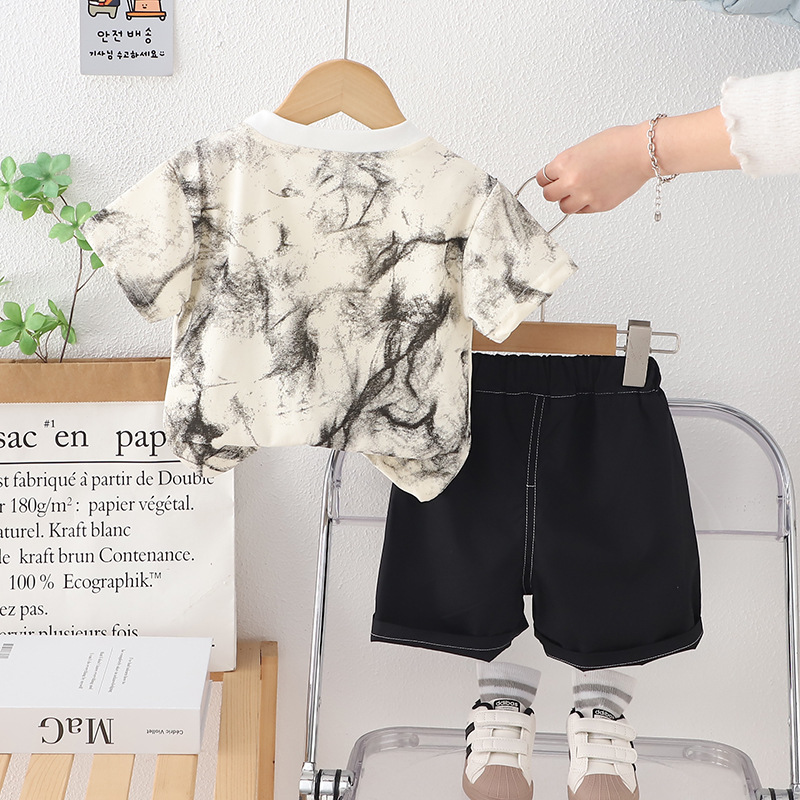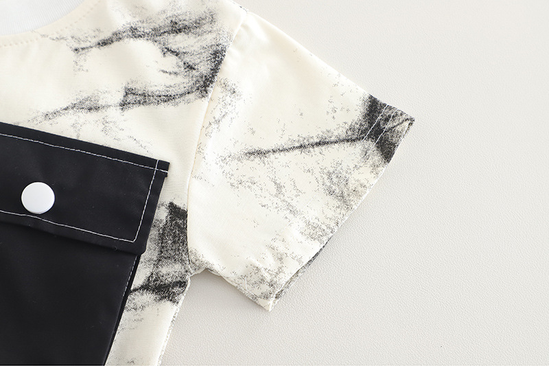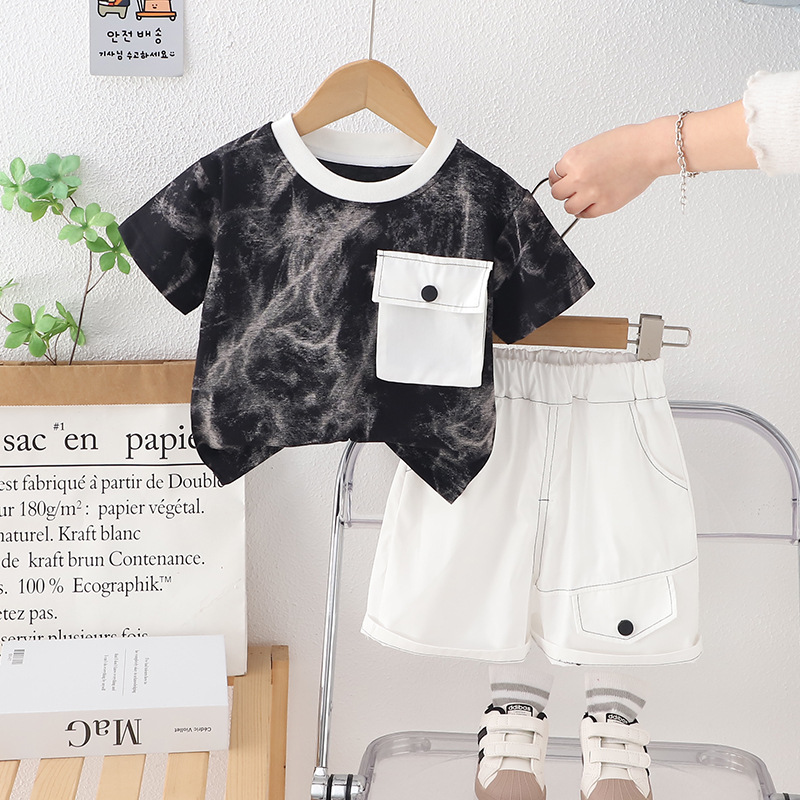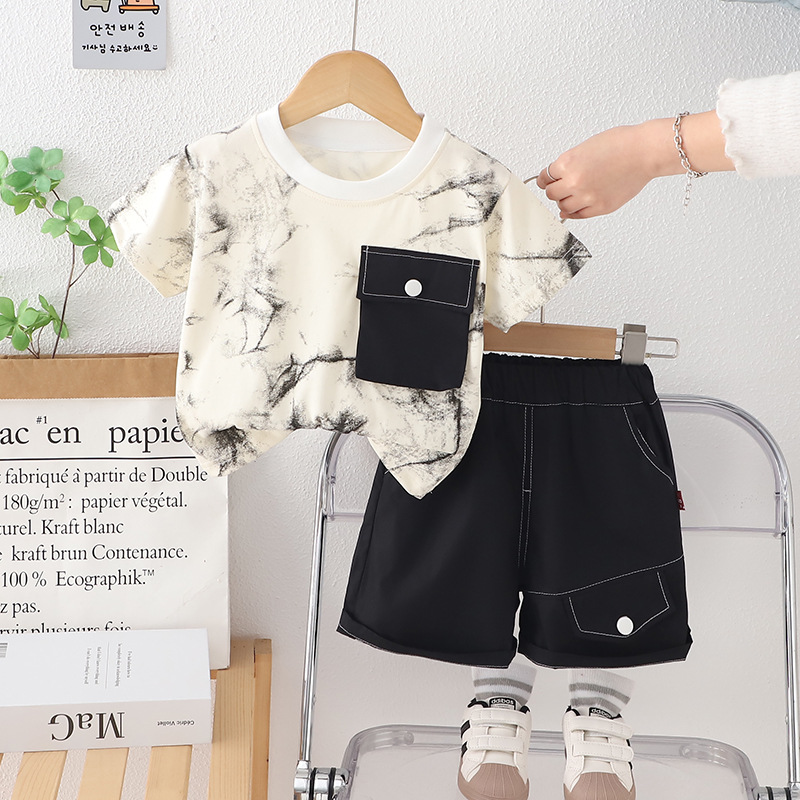 여름 소년 패션 반팔 세트 새로운 패션 세련된 중소 어린이 스테레오 반팔 투피스 포켓스토어 가기