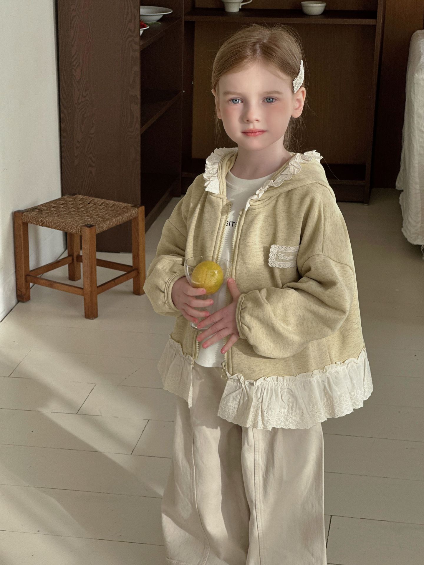여자 후드 자켓 2025 봄, 가을 새로운 어린이 레이스 지퍼 스웨터 여자 캐주얼 다목적 탑