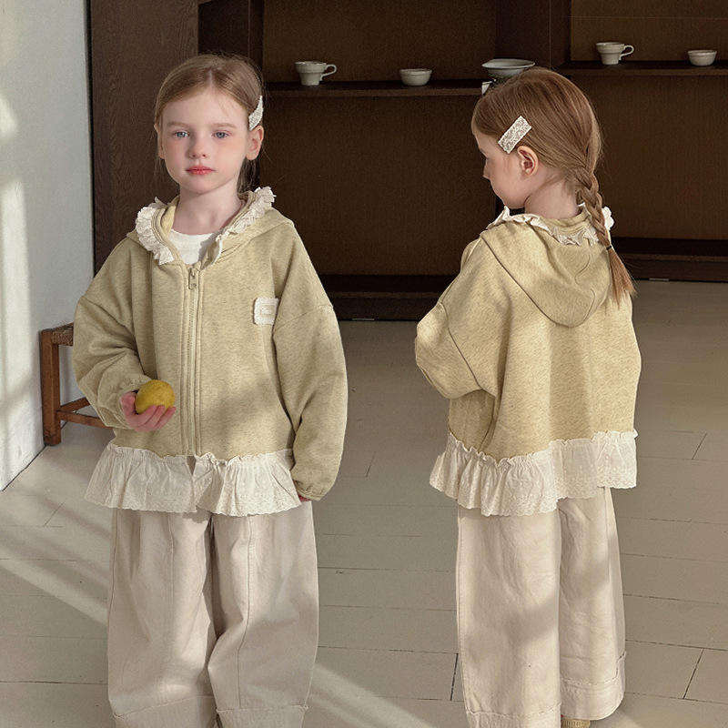 여자 후드 자켓 2025 봄, 가을 새로운 어린이 레이스 지퍼 스웨터 여자 캐주얼 다목적 탑스토어 가기
