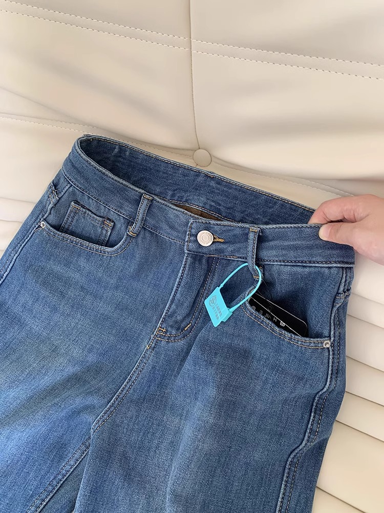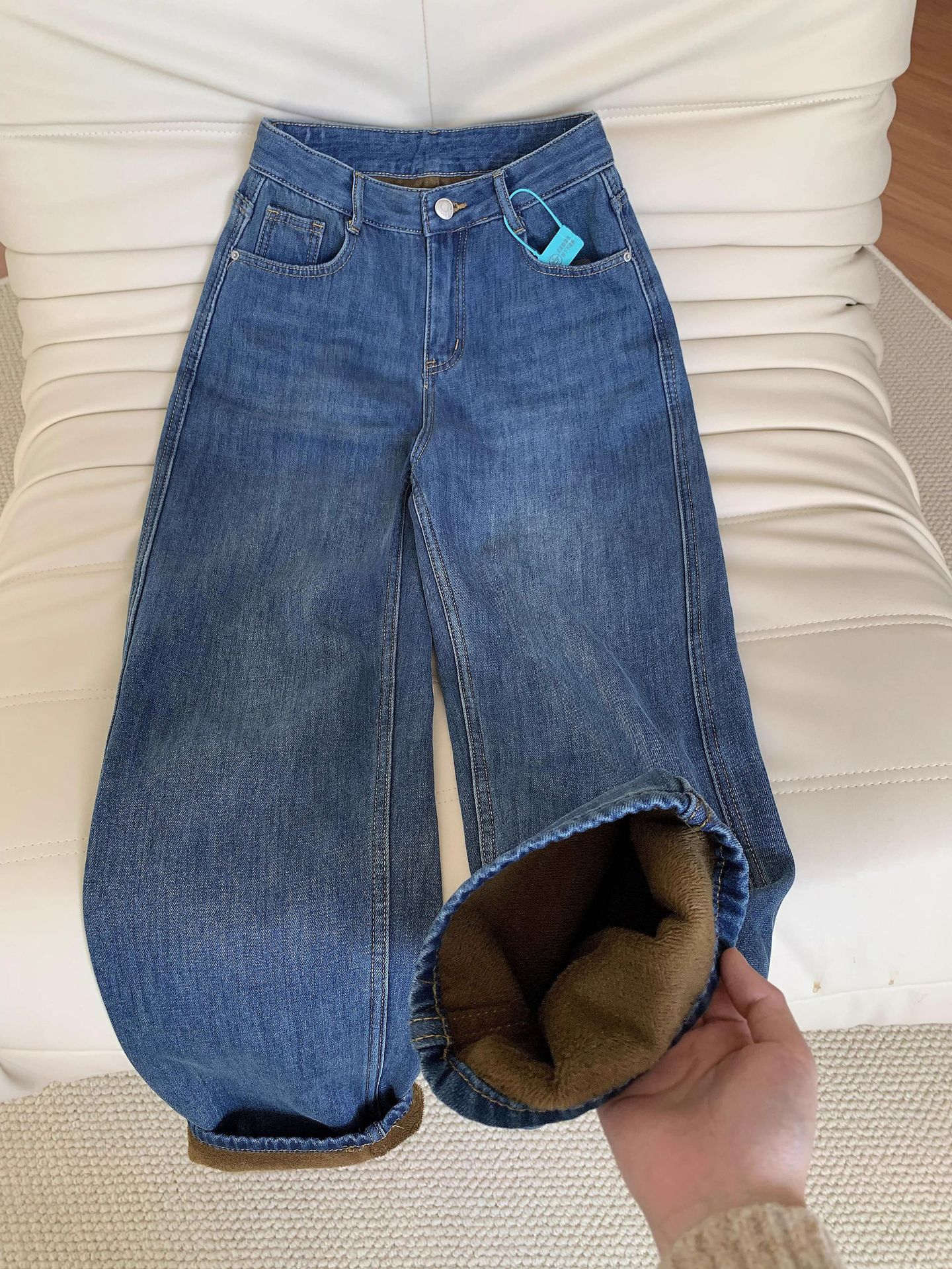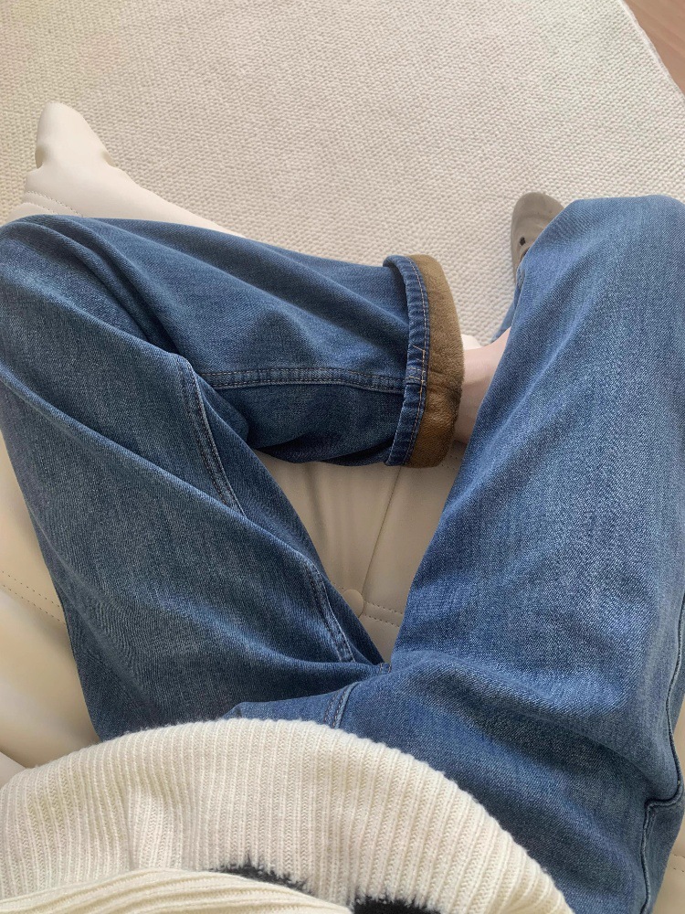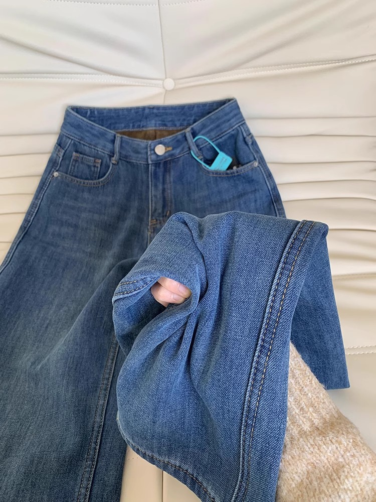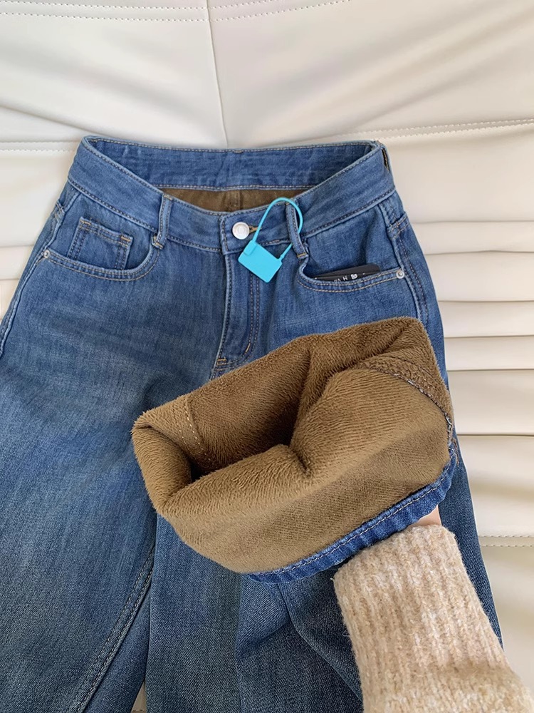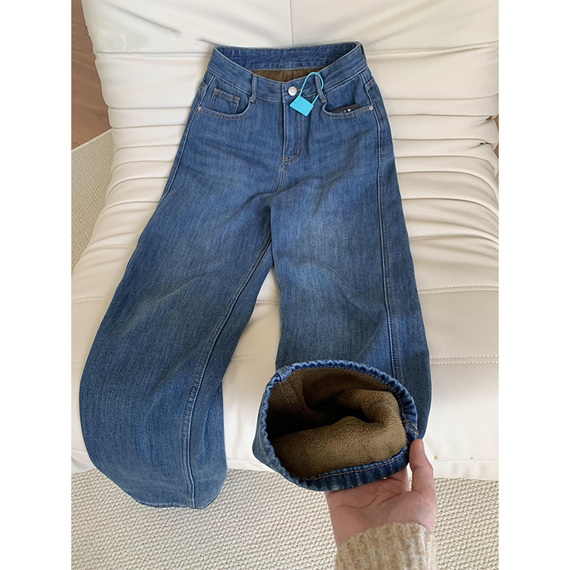 빈티지 기모 좁은 넓은 다리 청바지 여성 겨울 2025 새로운 높은 허리 느슨한 슬리밍 따뜻한 스트레이트 바지스토어 가기