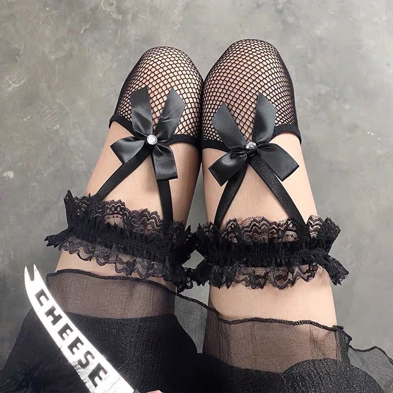무료 배송 다양한 멜빵 여성용 무릎 높이 스타킹 안티 드롭 섹시한 슬림 레이스 순수 블랙 실크 망사 스타킹 도매