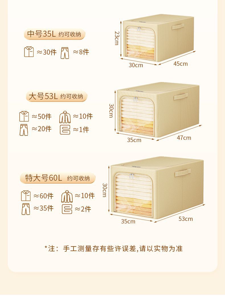 면 및 린넨 심화 된 옷 베이너 상자 가정용 옷장 장난감 이동 저장 상자 휴대용 접이식 저장 상자