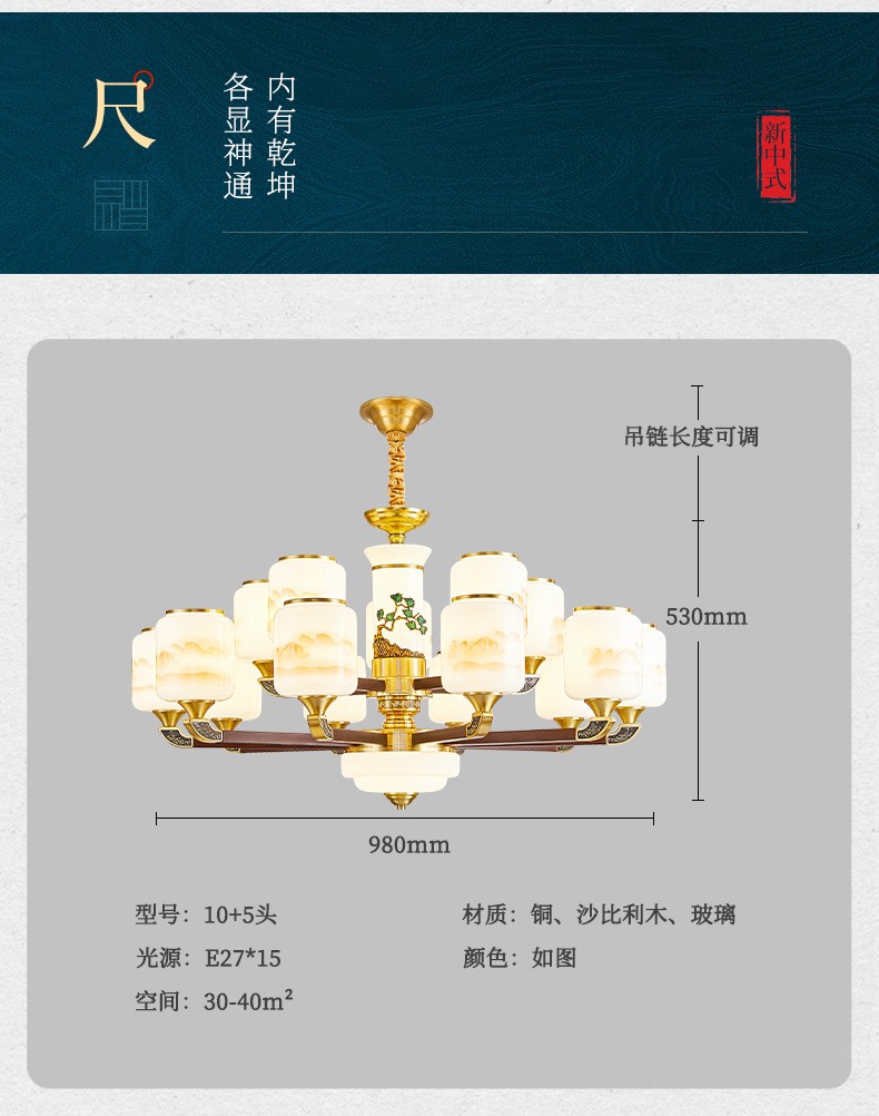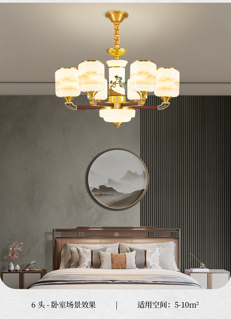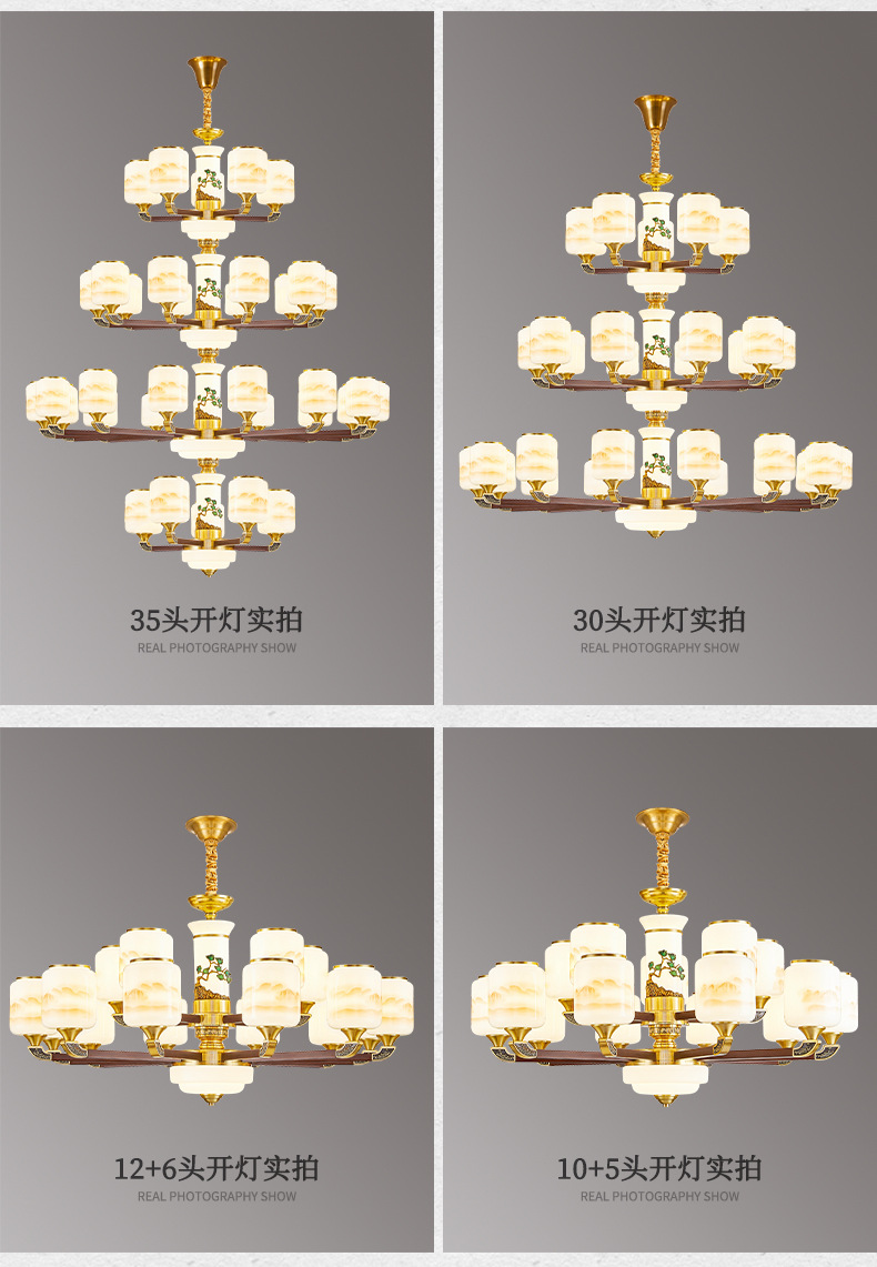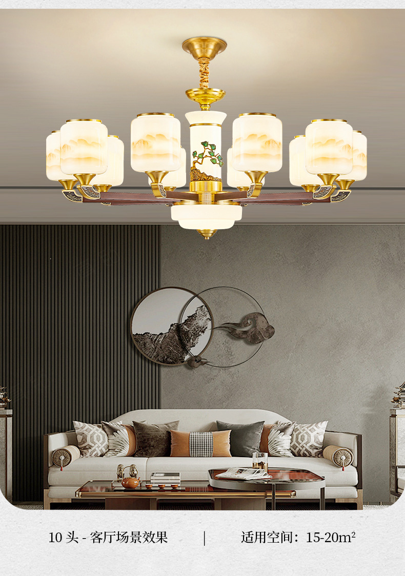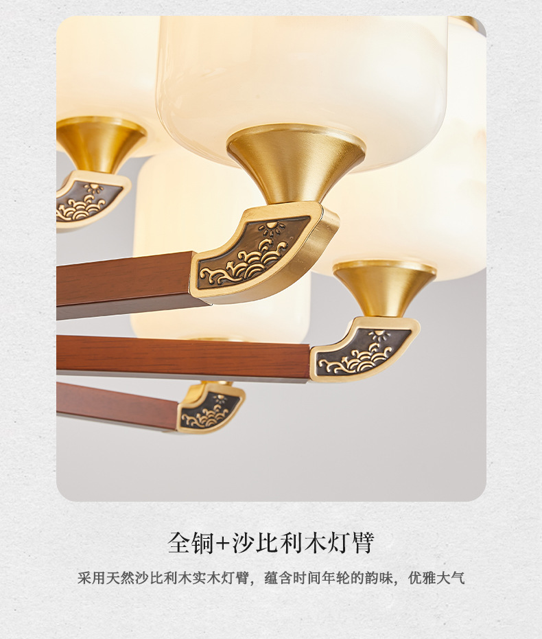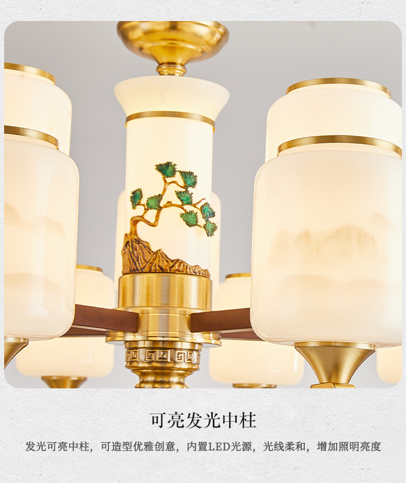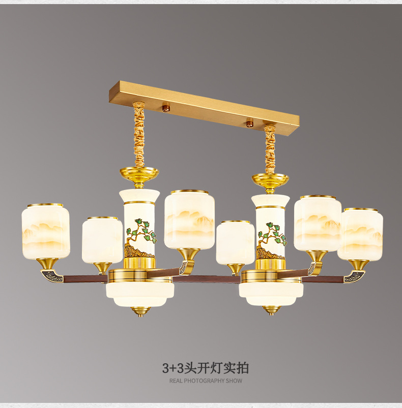 새로운 중국 스타일의 모든 구리 샹들리에 거실 램프 중국 스타일의 빌라 조명 이중 건물 대기 구리 단단한 나무 식당 램프스토어 가기
