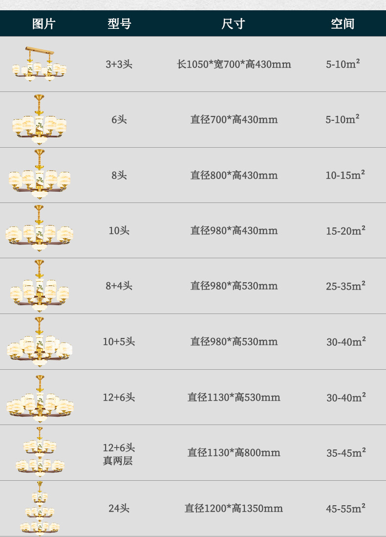 새로운 중국 스타일의 모든 구리 샹들리에 거실 램프 중국 스타일의 빌라 조명 이중 건물 대기 구리 단단한 나무 식당 램프