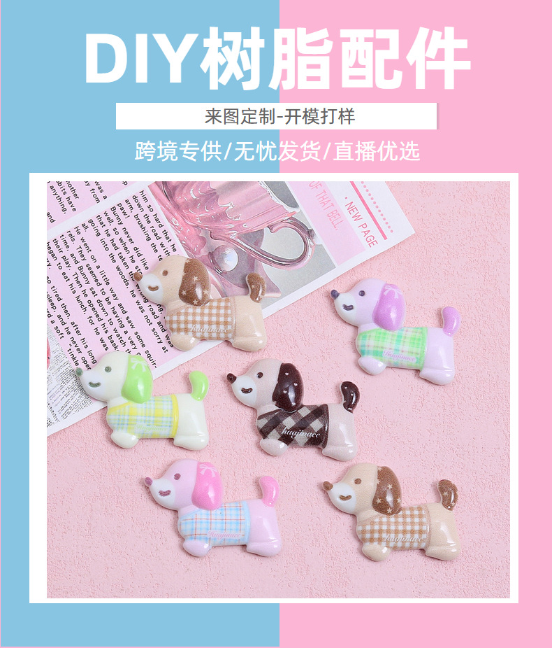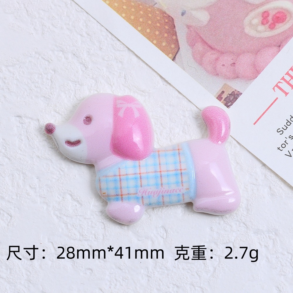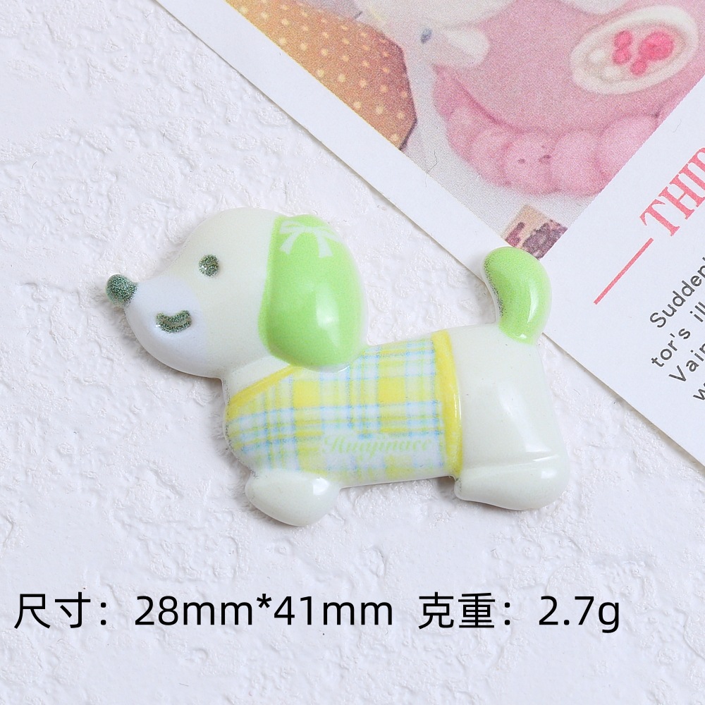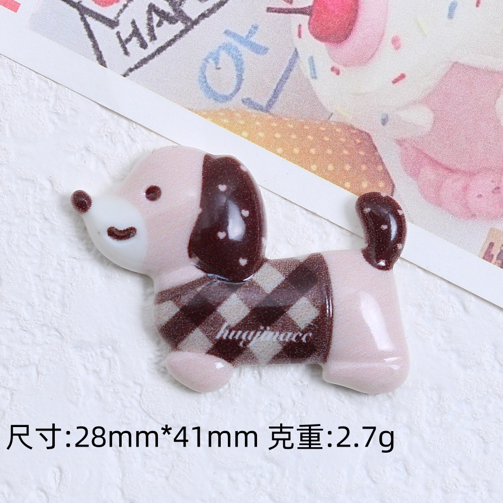 귀여운 멀티 컬러 체크 개 크림 접착제 DIY 수제 헤어 클립 냉장고 소재 수지 액세서리 도매