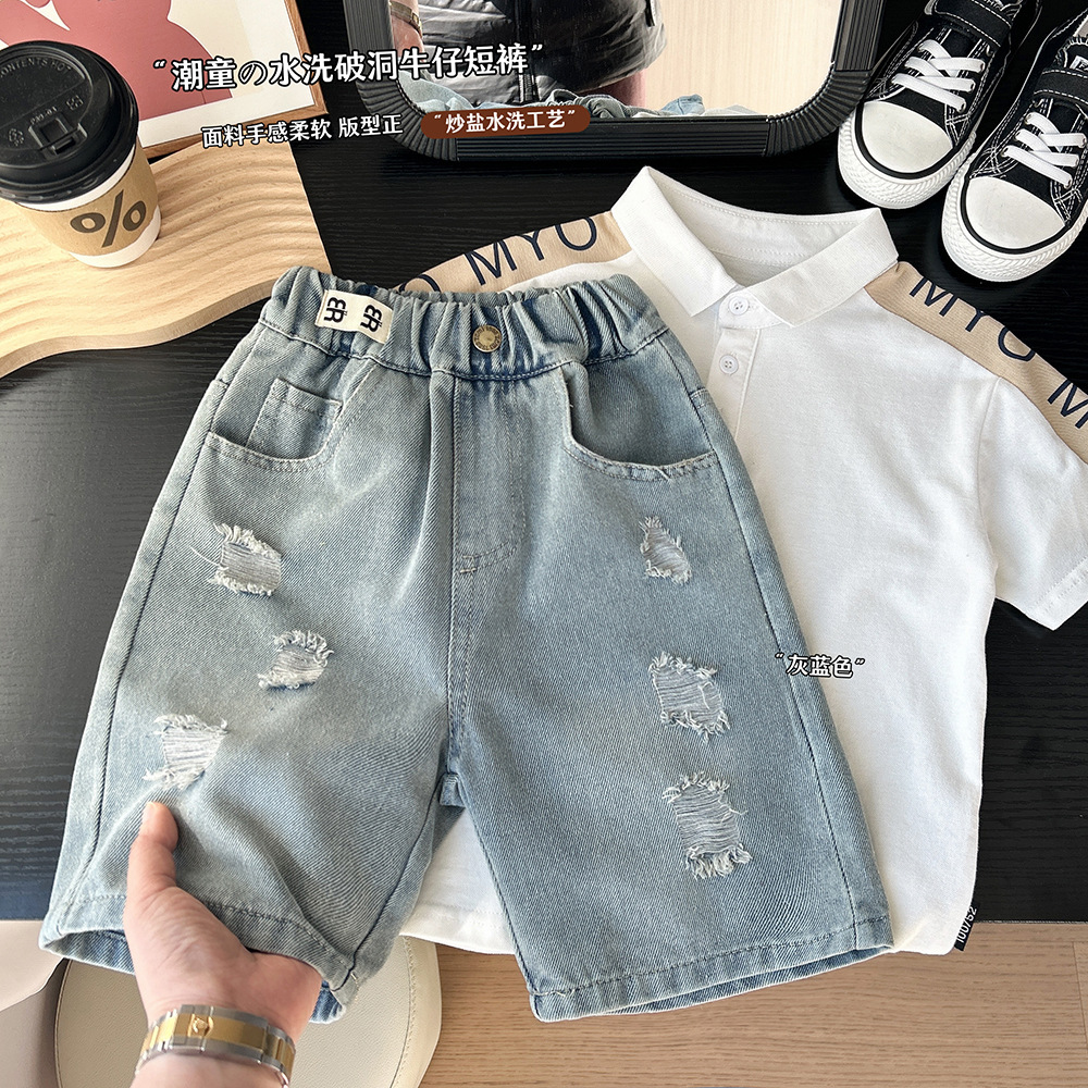 2025 새로운 여름 아동복 소년 어린이 구멍 조수 외국 스타일 데님 반바지 도매 세대