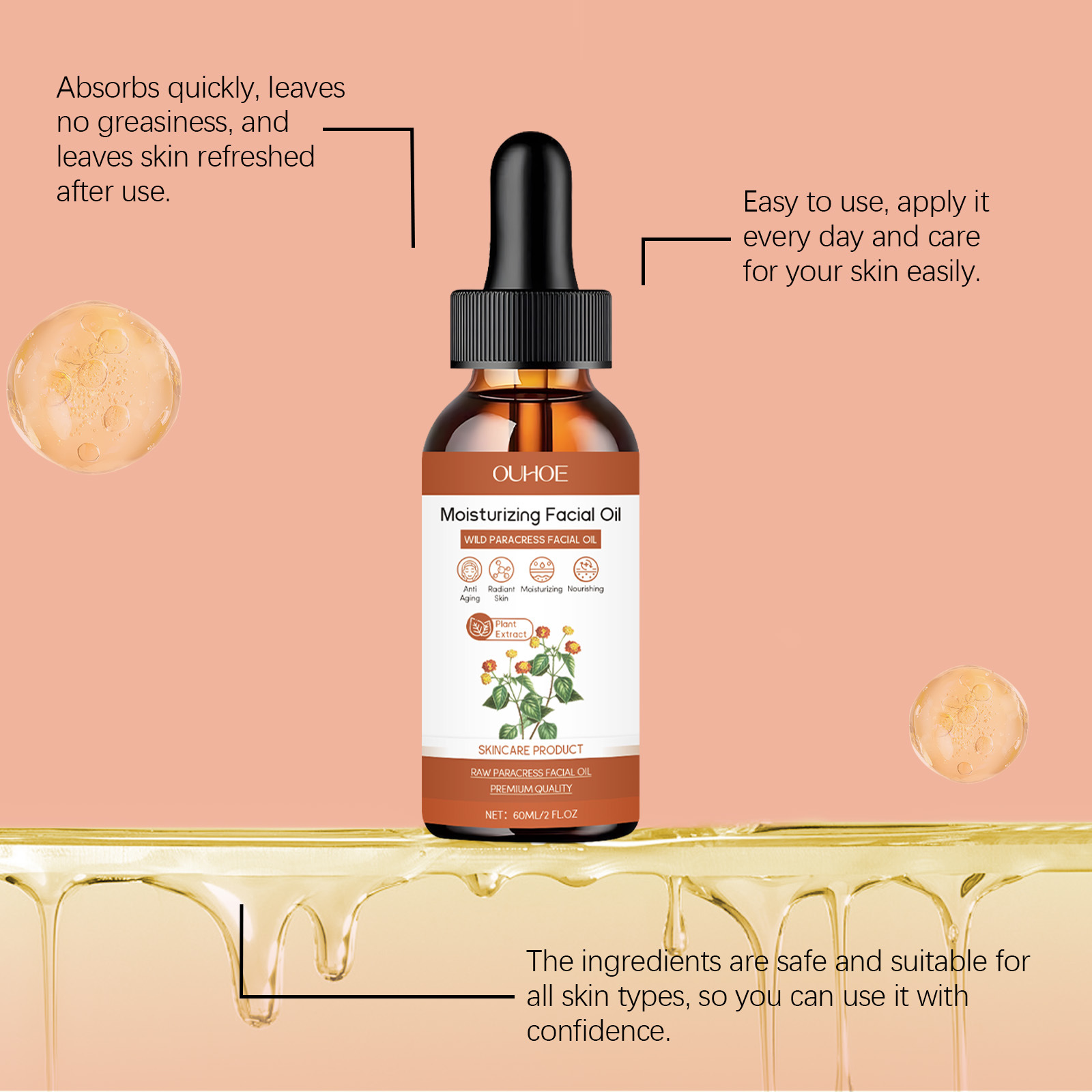 OUHOE 보습 에센셜 오일 영양 피부 수화 얼굴 에센스 오일