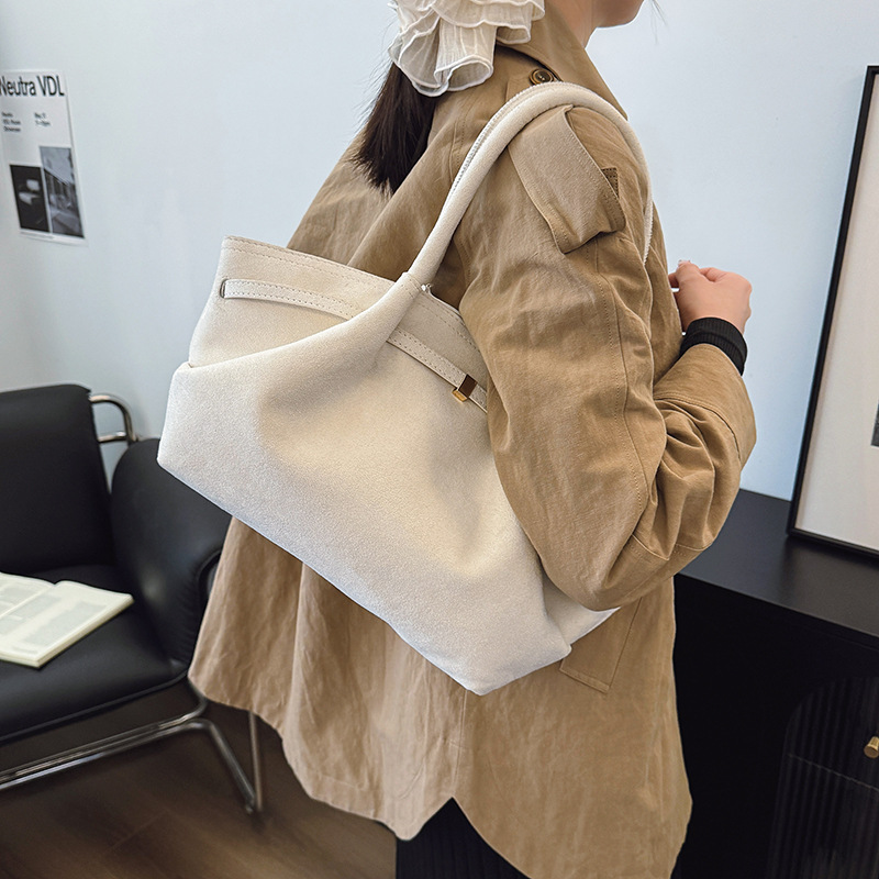 2025 새로운 국경 도매 고급 질감 스웨이드 대용량 통근 가방 올 매치 외국 스타일 토트 백