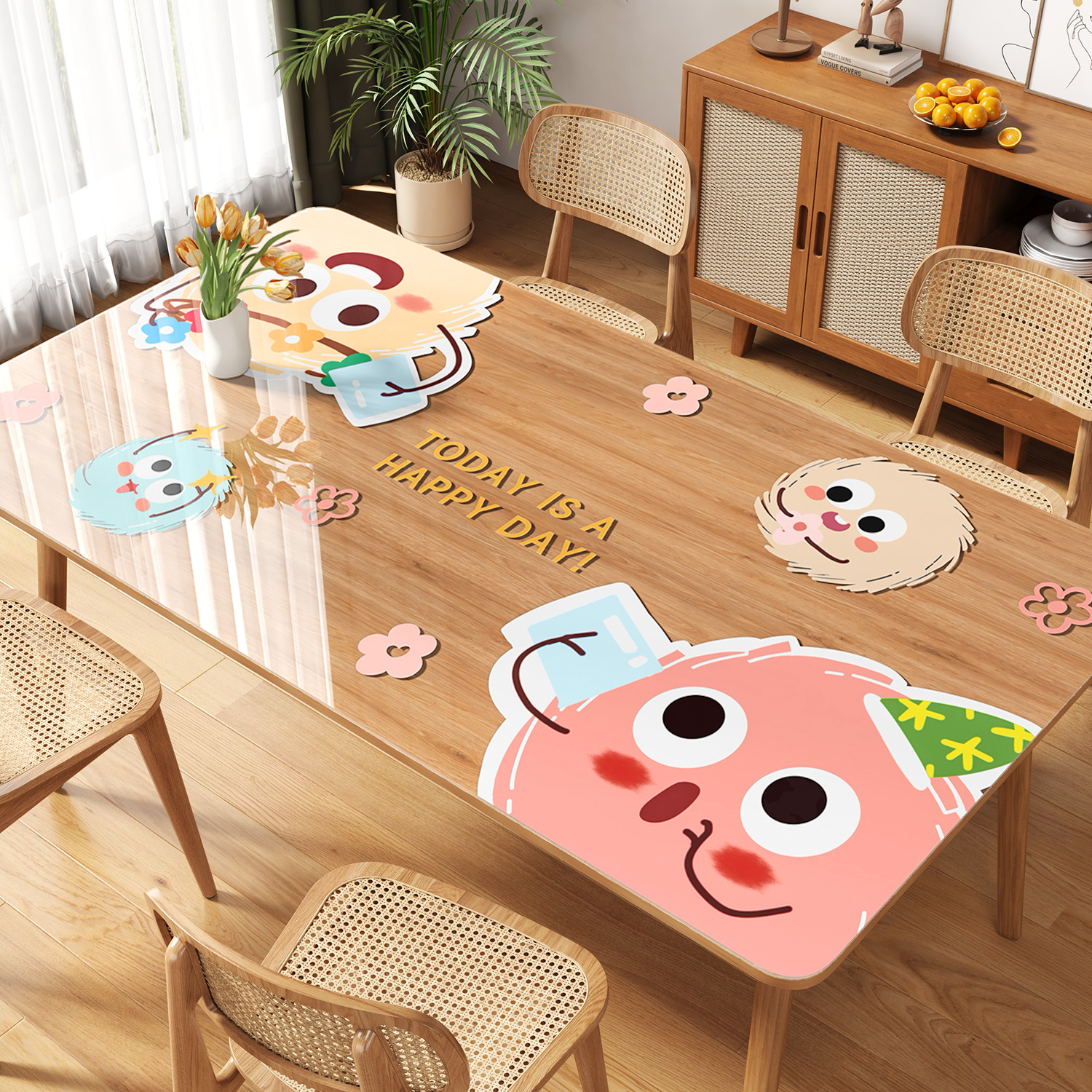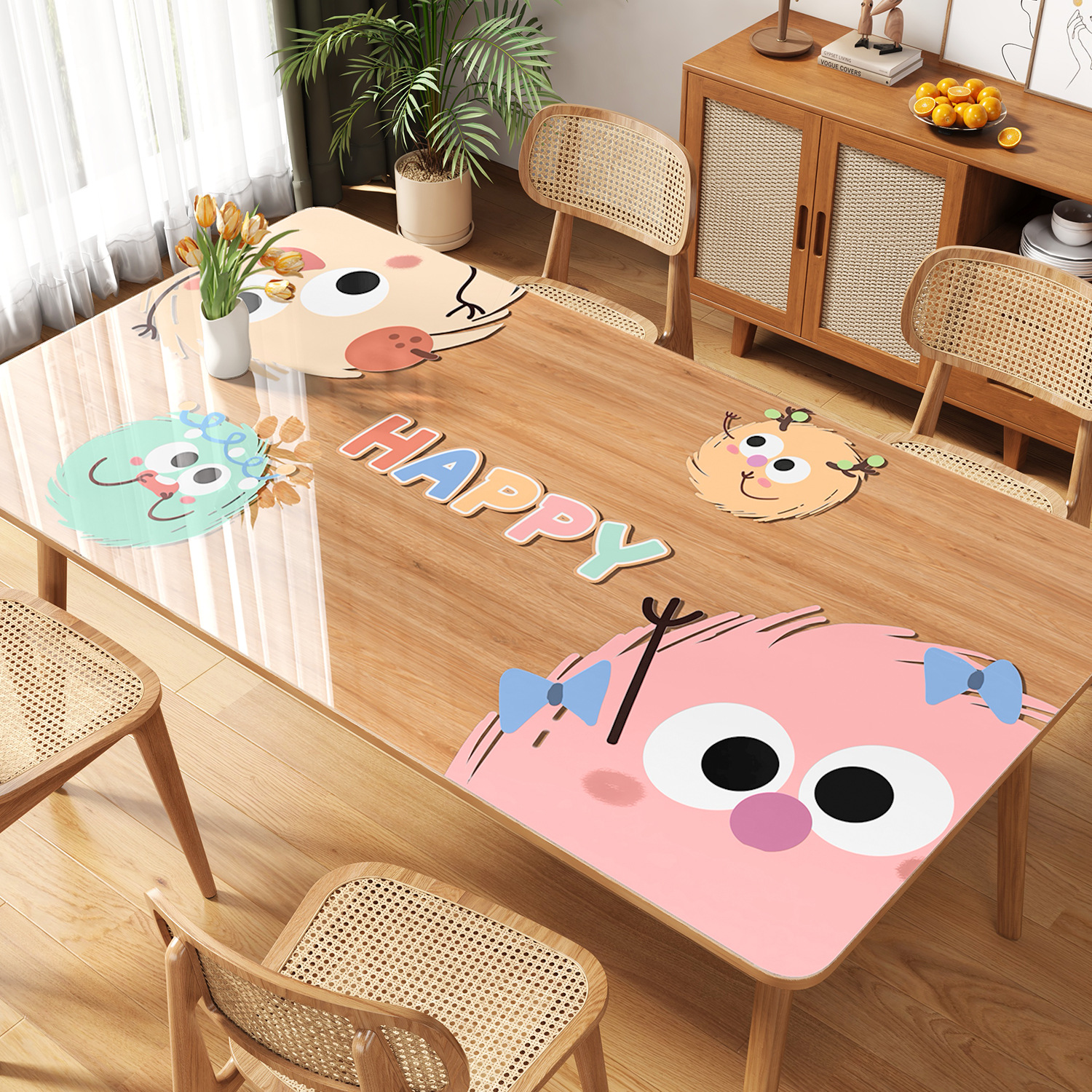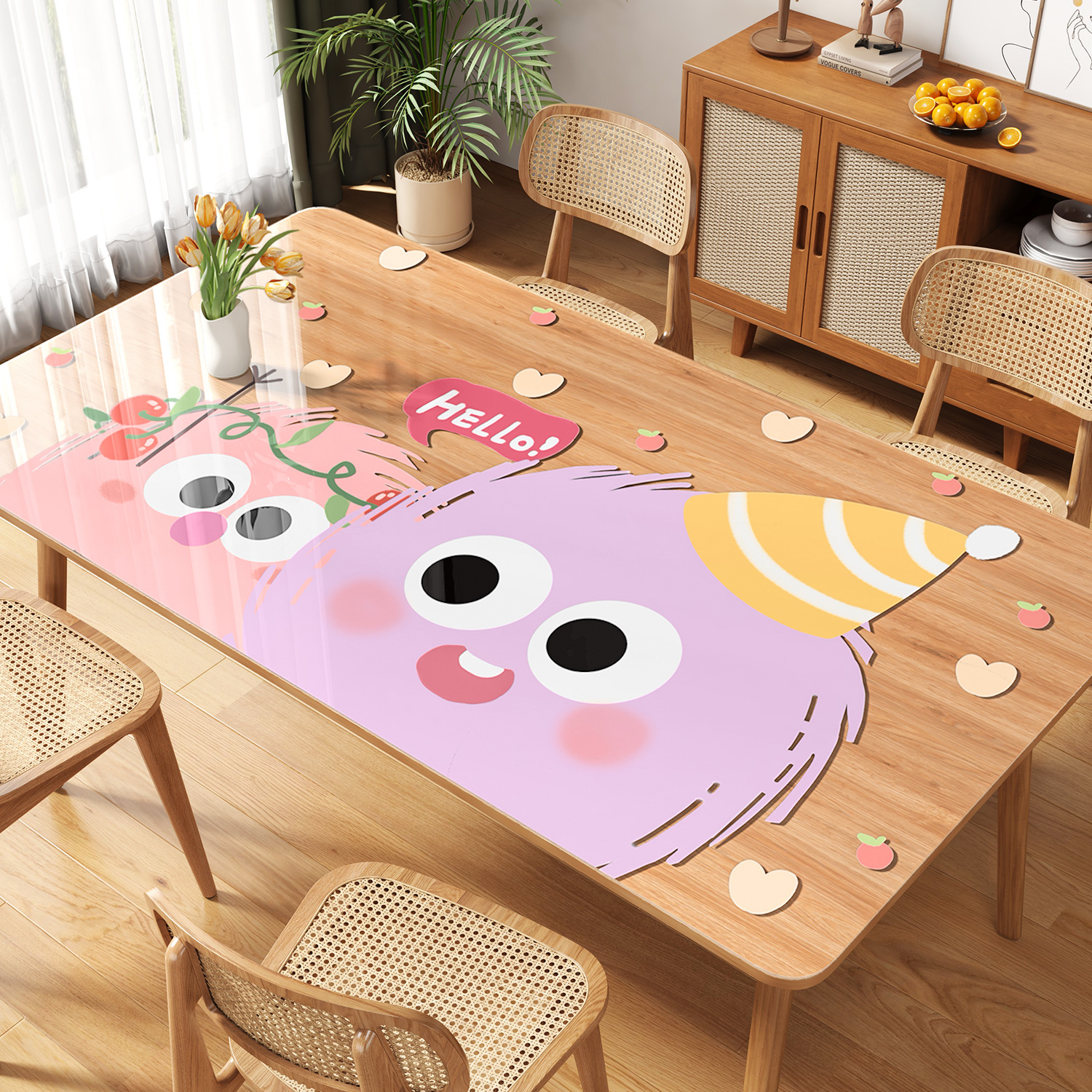 도파민 테이블 매트 내유성 방수 방수 PVC 투명 부드러운 유리 식탁보 만화 커피 테이블 데스크탑 보호 매트
