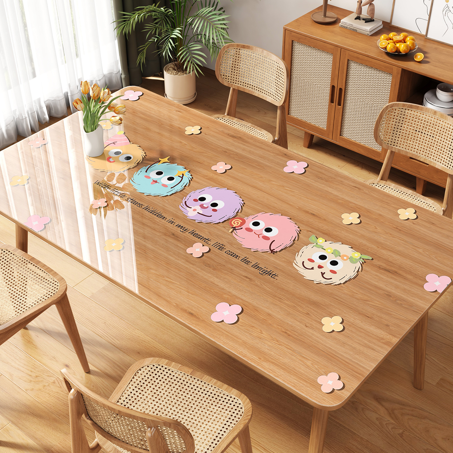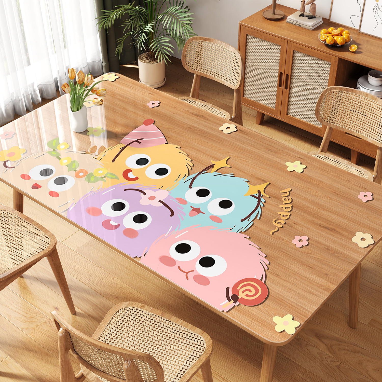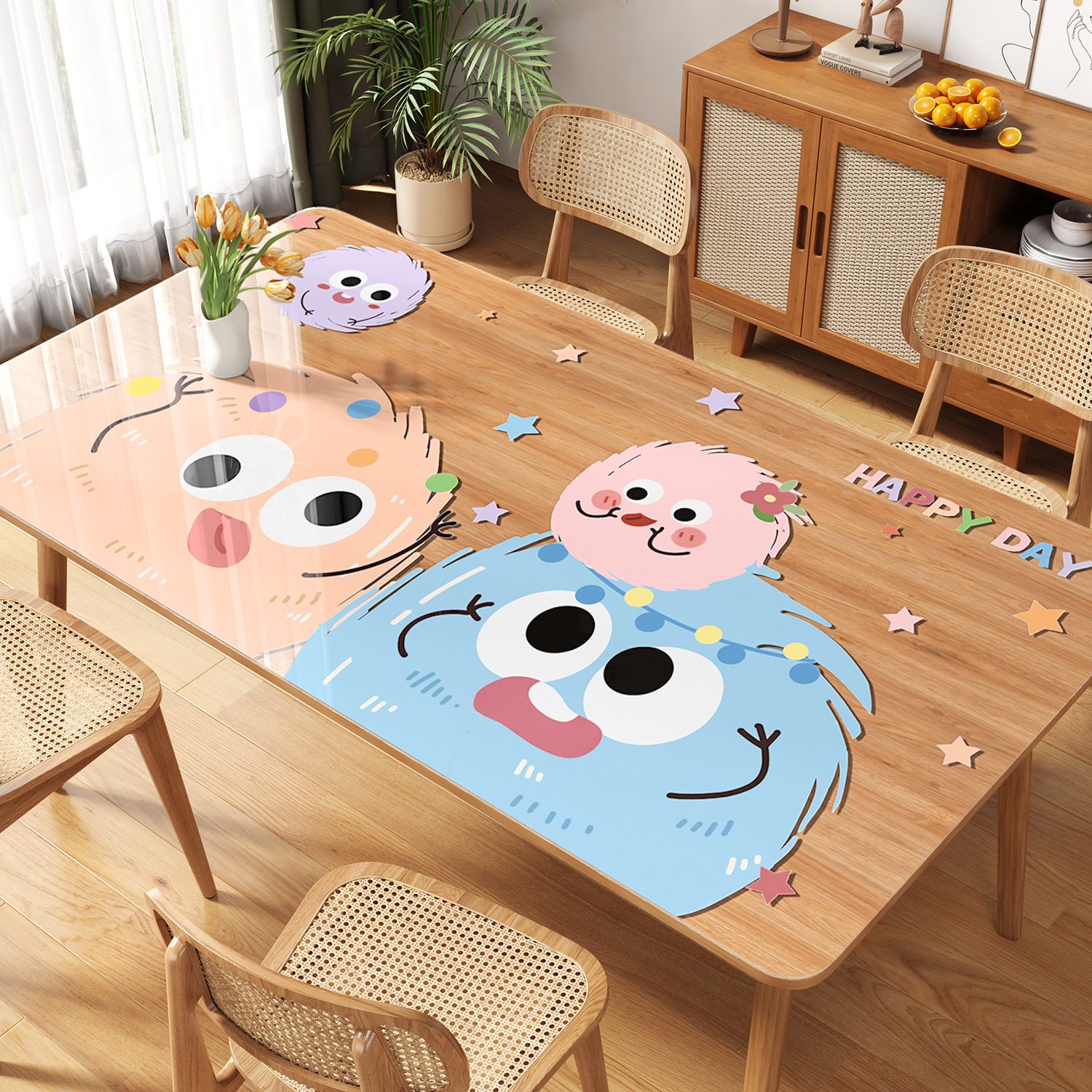 도파민 테이블 매트 내유성 방수 방수 PVC 투명 부드러운 유리 식탁보 만화 커피 테이블 데스크탑 보호 매트