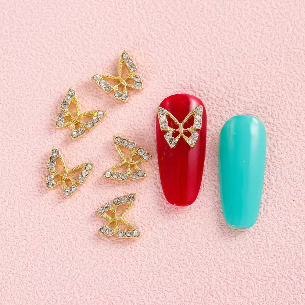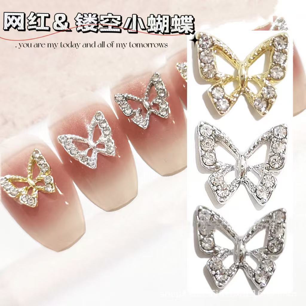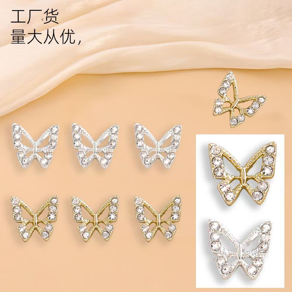 2024 국경 핫 세일 나비 네일 아트 쥬얼리 할로우 합금 다이아몬드 날개 3D 네일 장식 액세서리스토어 가기