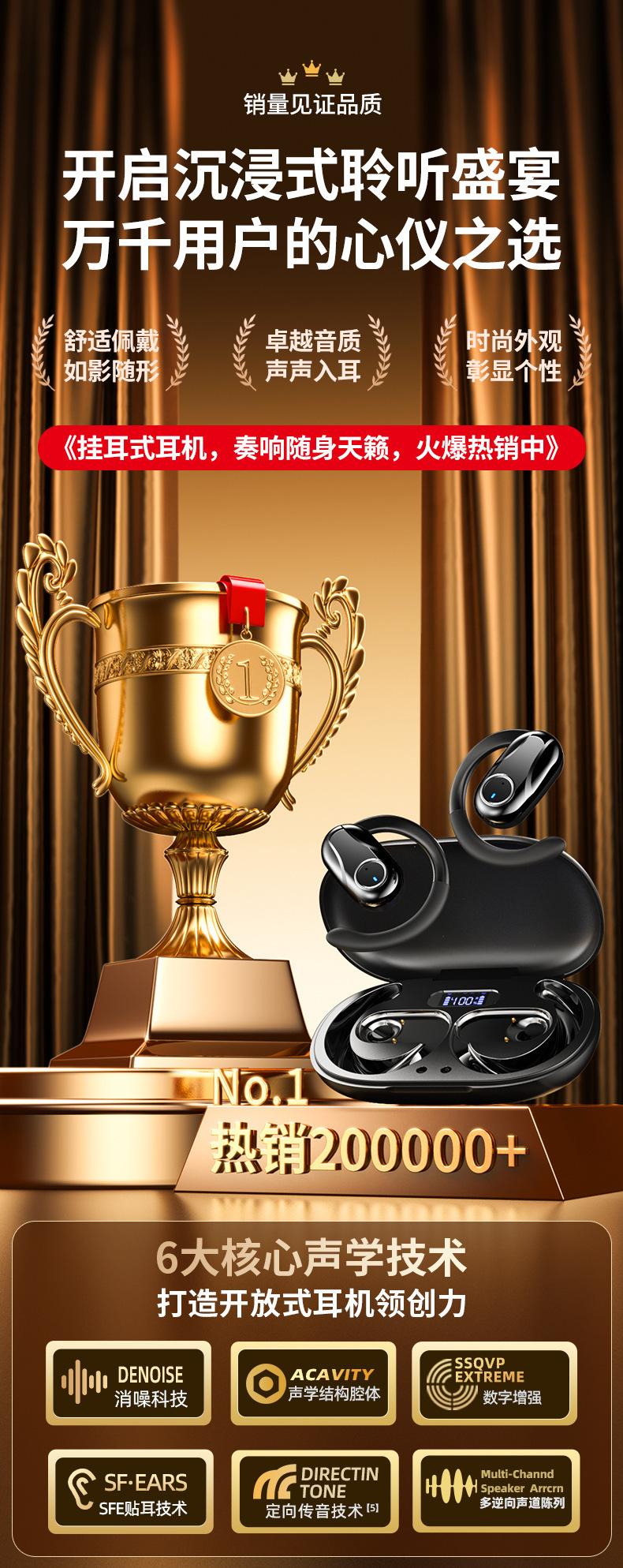 베를린의 소리 2025 새로운 블루투스 헤드셋 귀걸이 스포츠 러닝 골전도 헤드셋 무선 블루투스 긴 배터리 수명스토어 가기