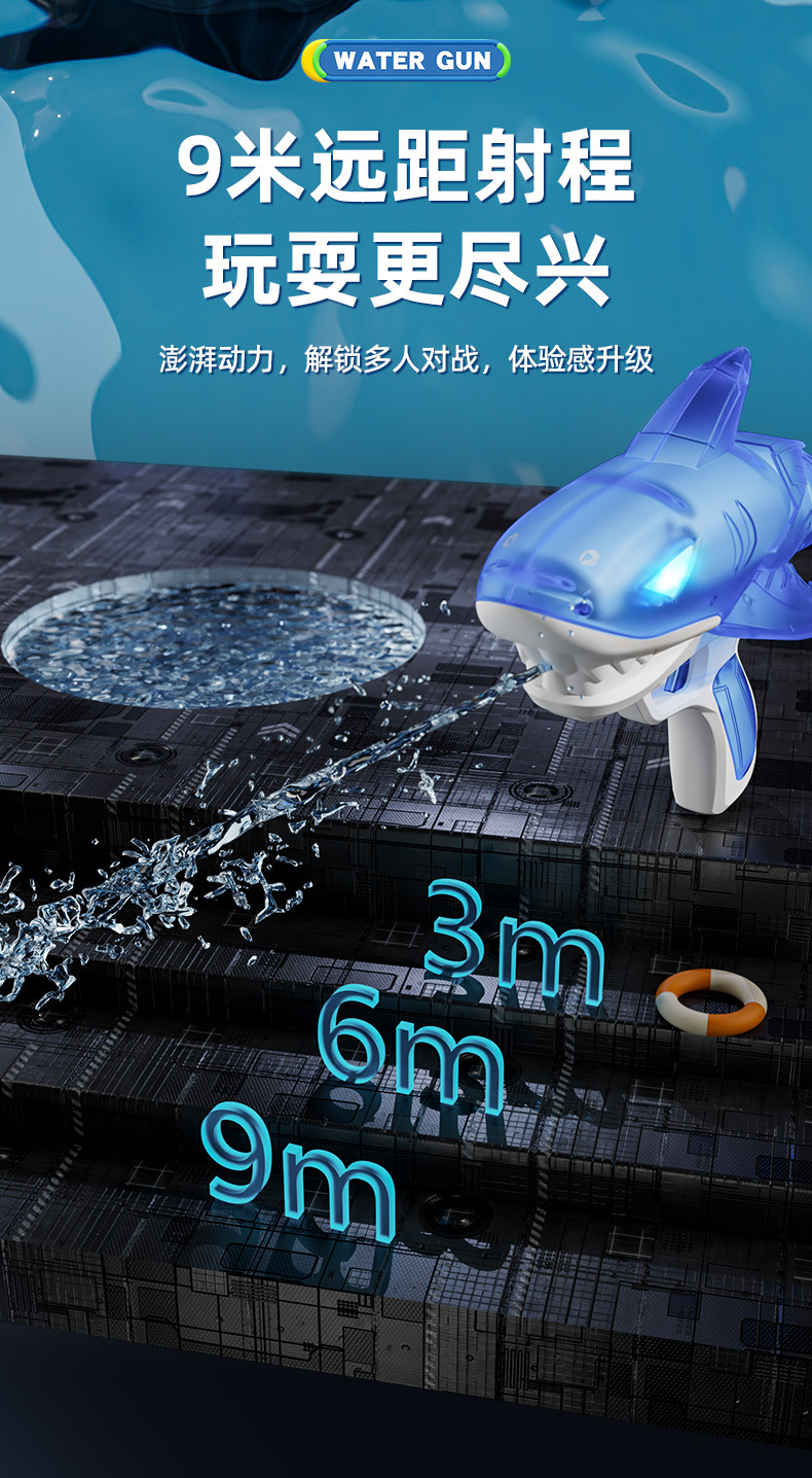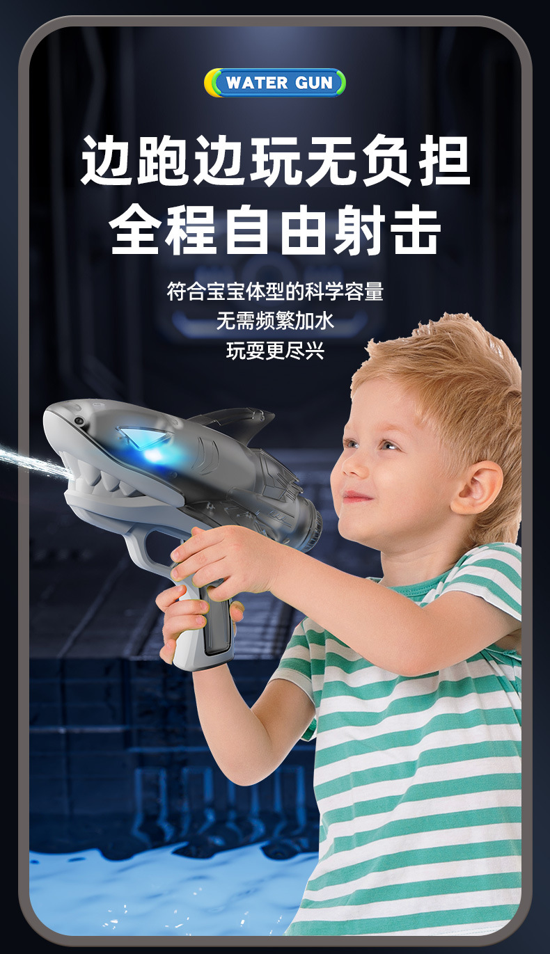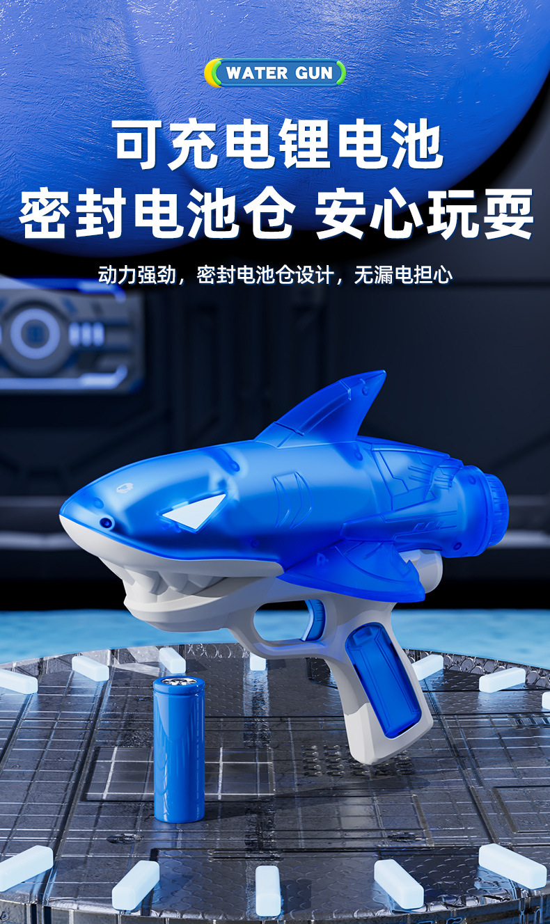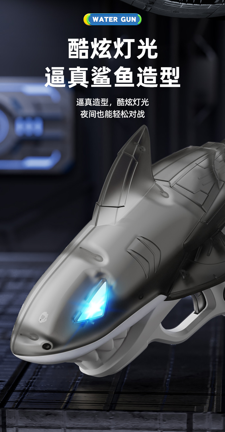 국경을 넘는 새로운 빛나는 상어 전기 물총 방수 야외 수영장 해변 물총 놀이 장난감 어린이스토어 가기