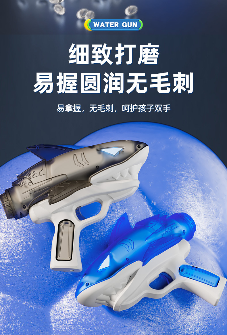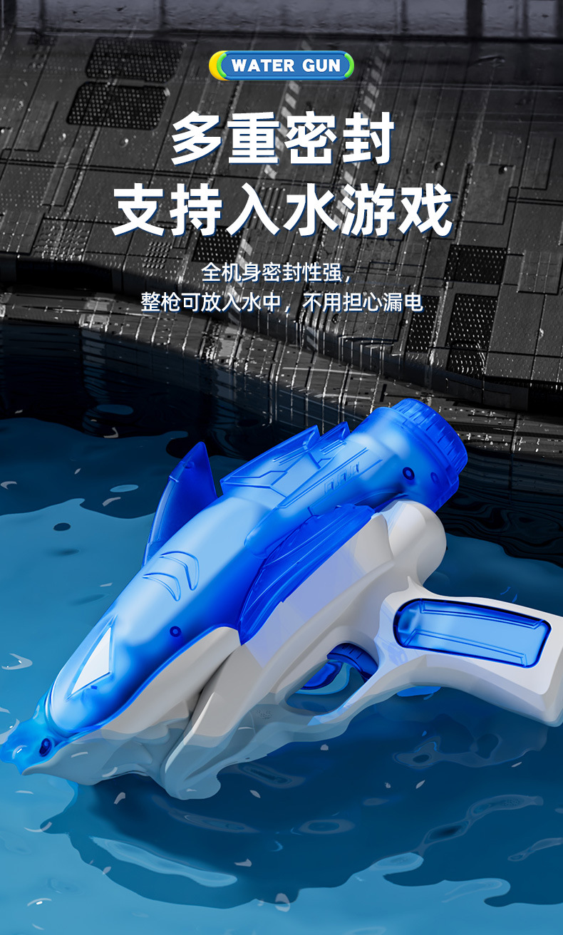 국경을 넘는 새로운 빛나는 상어 전기 물총 방수 야외 수영장 해변 물총 놀이 장난감 어린이