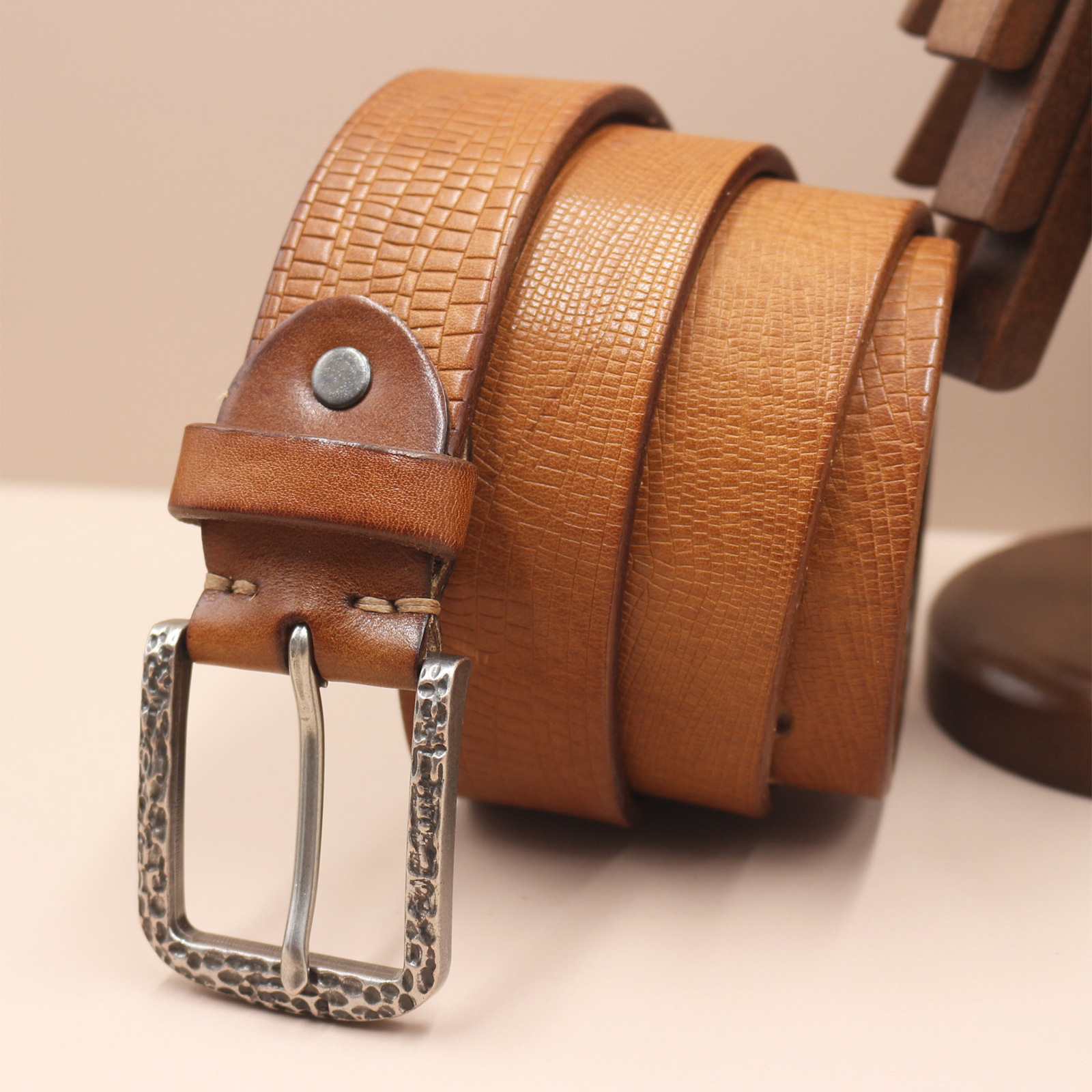 3.8CM 남성 벨트 정품 가죽 벨트 캐주얼 빈티지 균열 핀 버클 유약 탑 레이어 Cowhide 게으른 벨트