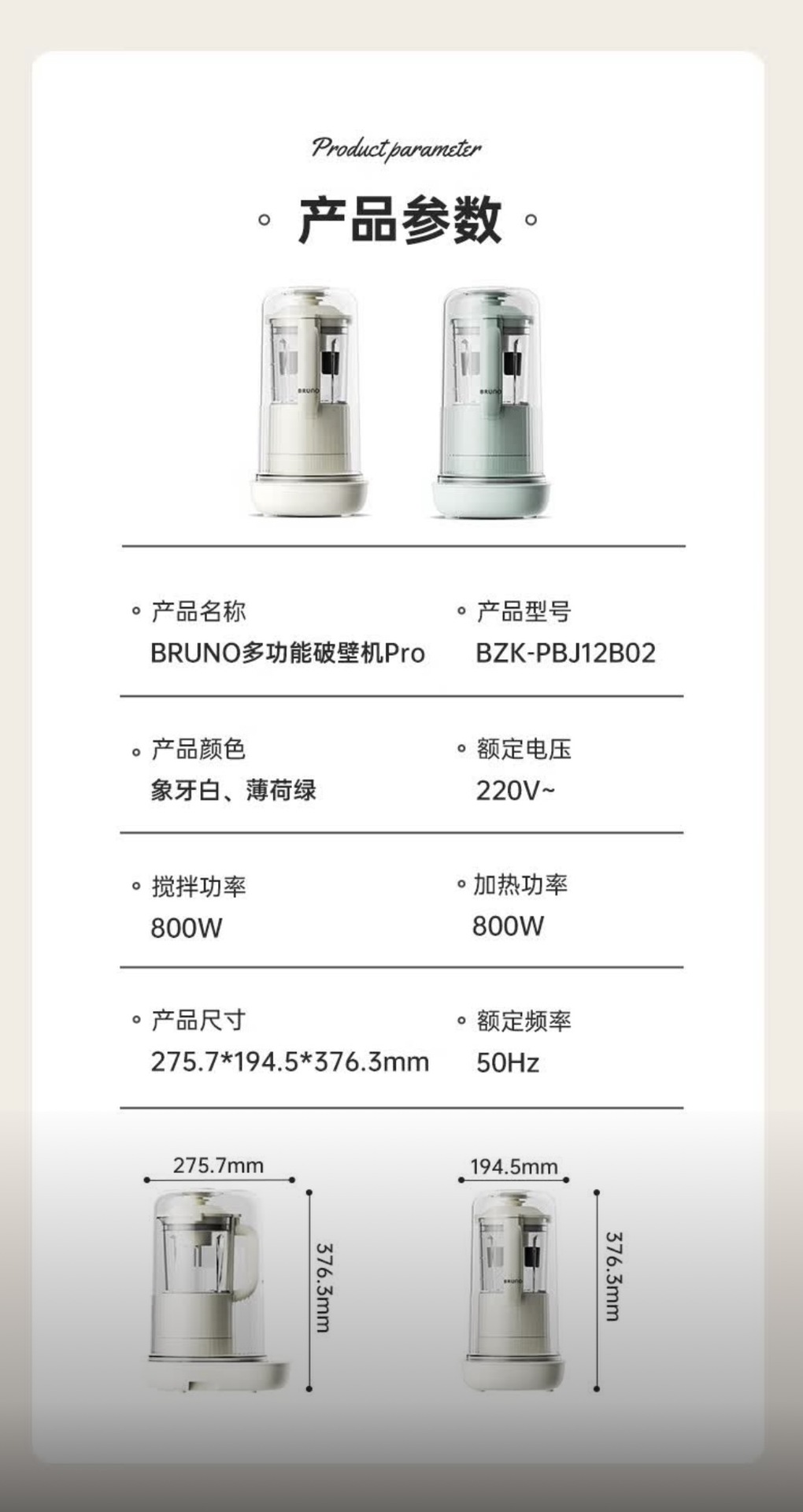 BRUNO 벽 파괴 기계 PRO 2세대 가정용 난방 공식 소형 두유 기계 비저음 요리 다기능 새 모델스토어 가기