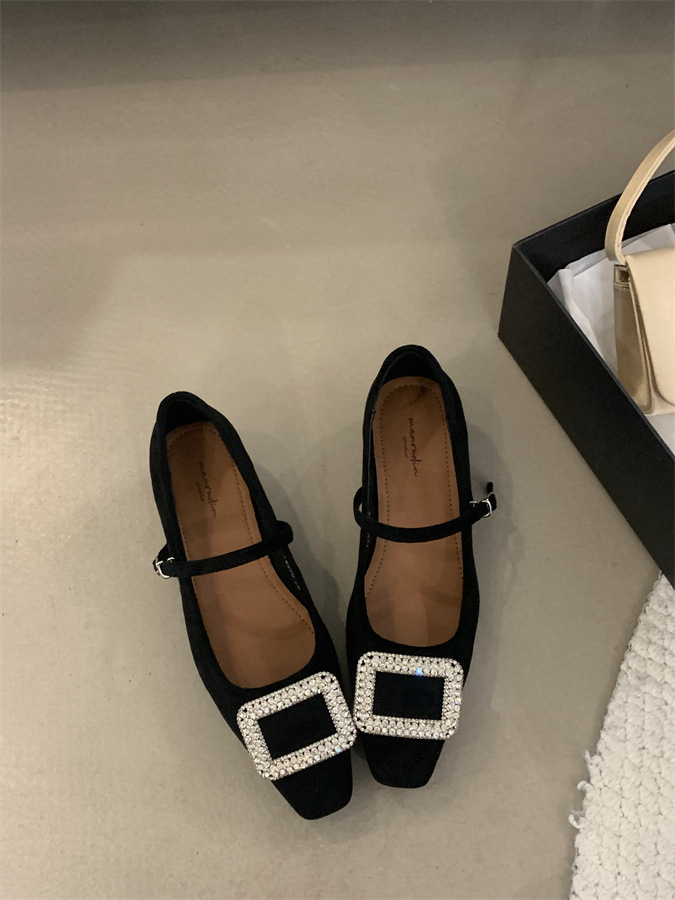프랑스 페어리 스타일 낮은 힐 라인 스톤 싱글 신발 여성의 2025 봄 새로운 우아한 한 단어 스퀘어 토이 메리 제인 신발