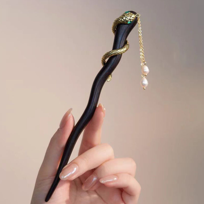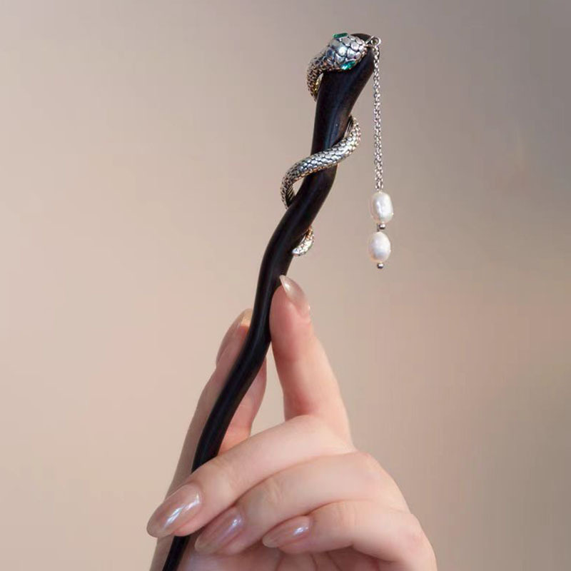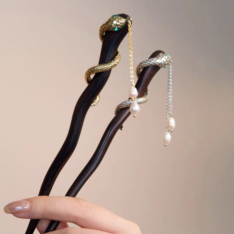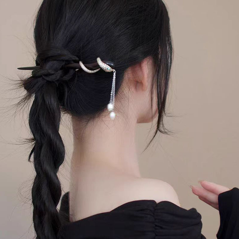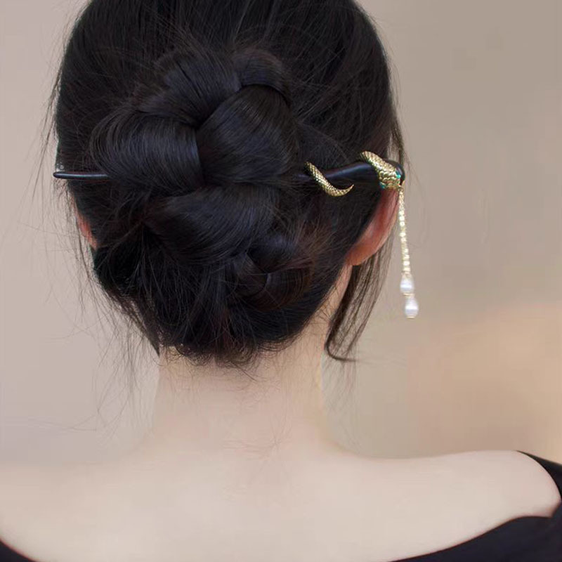 새로운 중국 스타일 스네이크 와딩 헤어핀 여성 골동품 워킹 술 나무 머리핀 틈새 빈티지 올 매치 헤어 디스크 헤드웨어