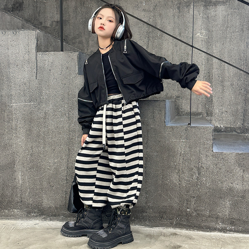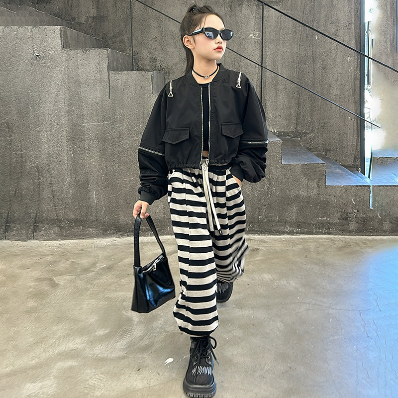 소녀의 봄과 가을 코트 2025 새로운 스타일 소녀의 세련된 유행 짧은 재킷 큰 소년 멋진 잘 생긴 야구 세트스토어 가기