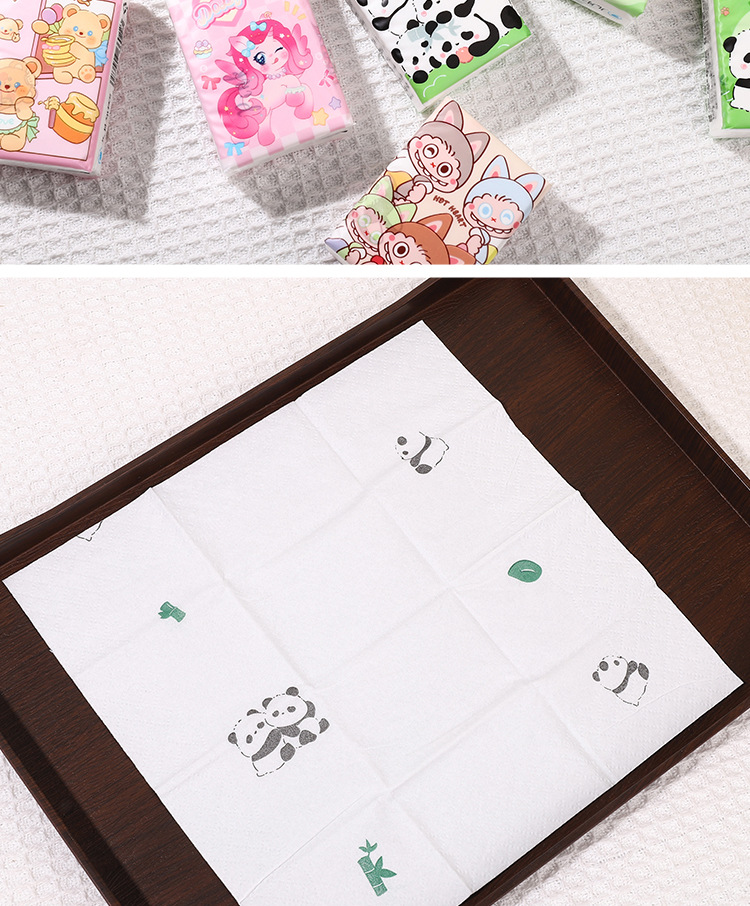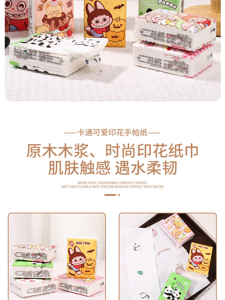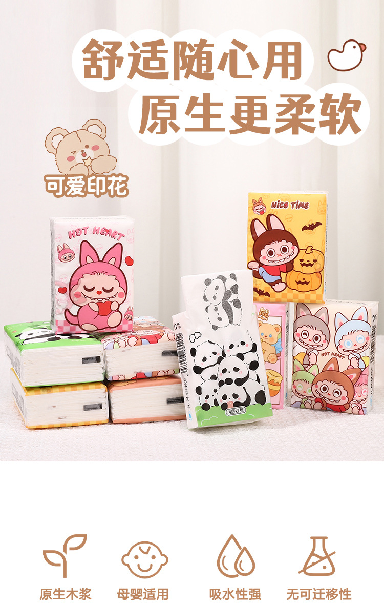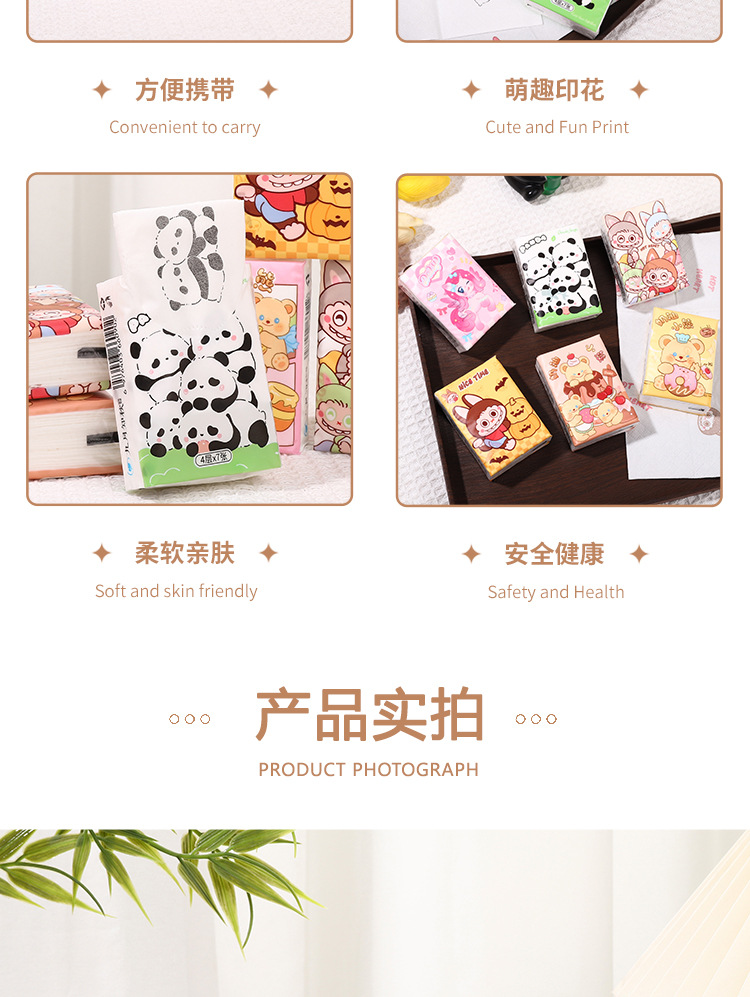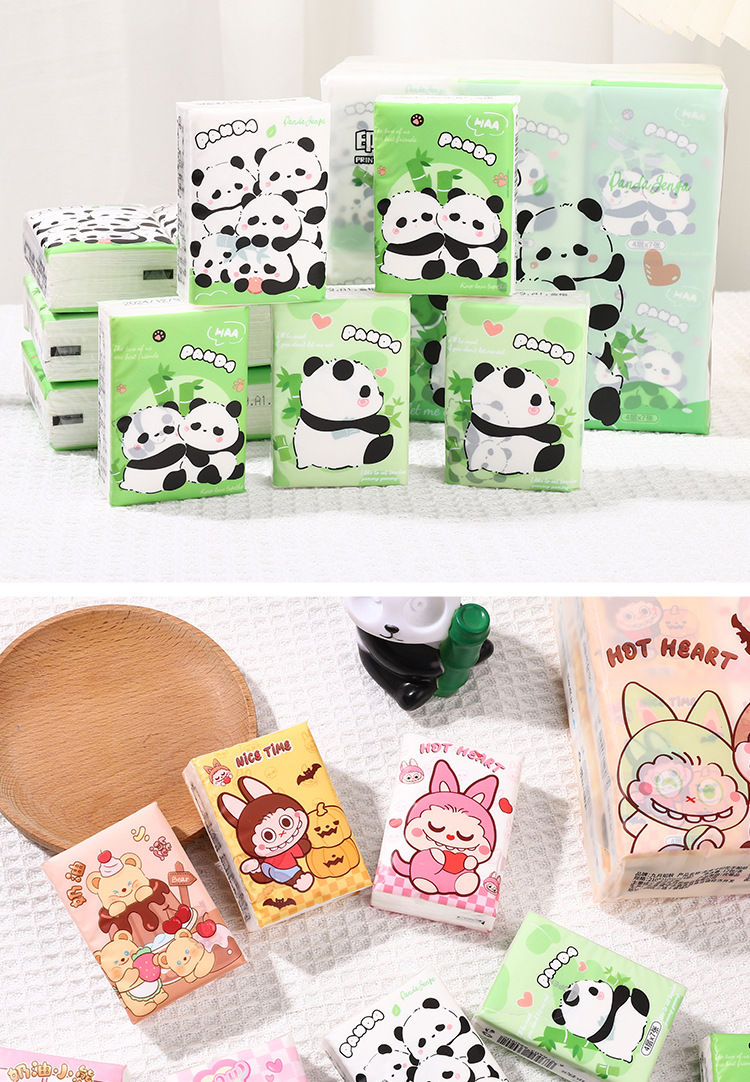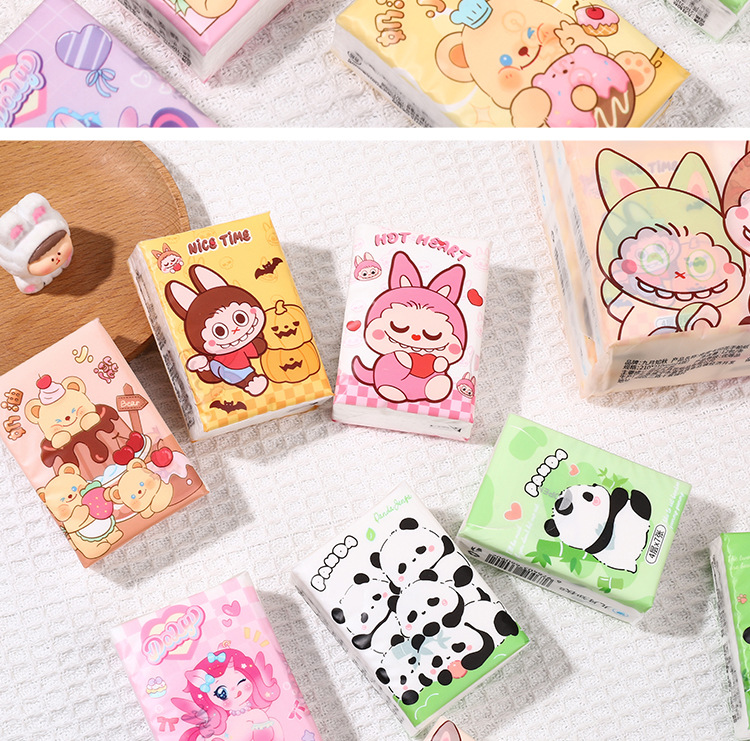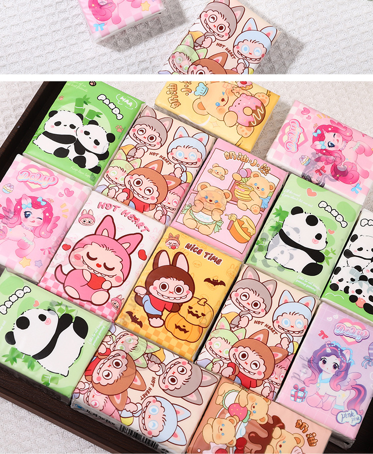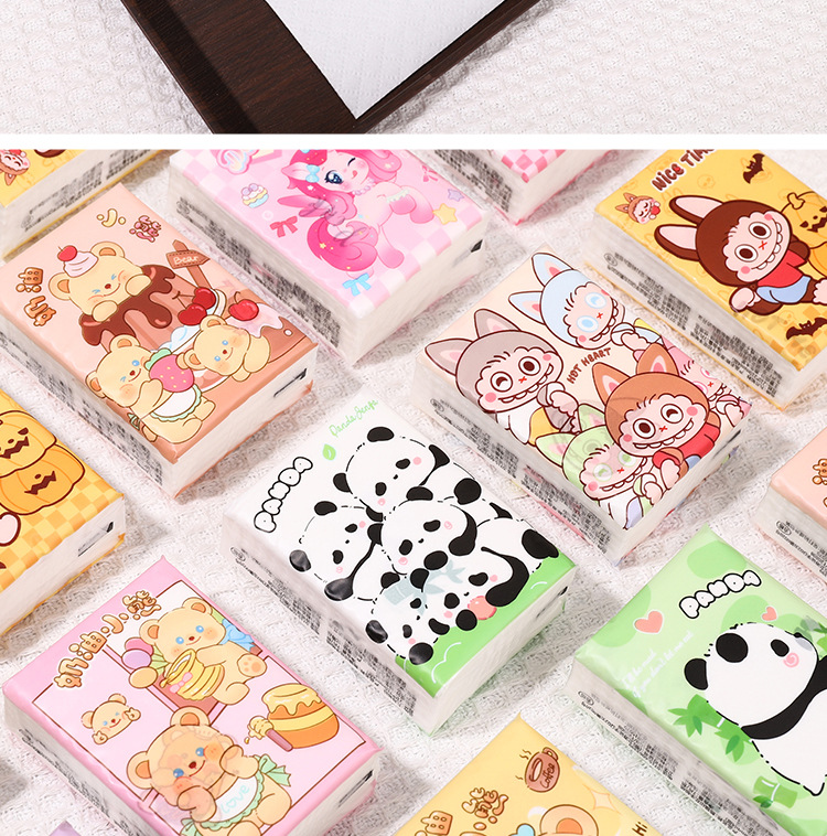만화 Ins 스타일 인쇄 된 손수건 종이 12 팩 휴대용 화장실 종이 미니 캐리 온 서랍 냅킨