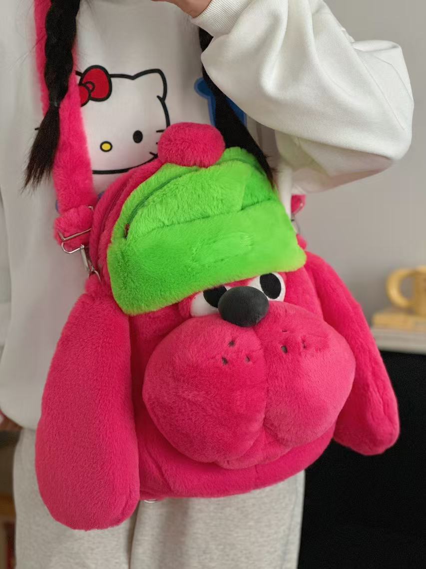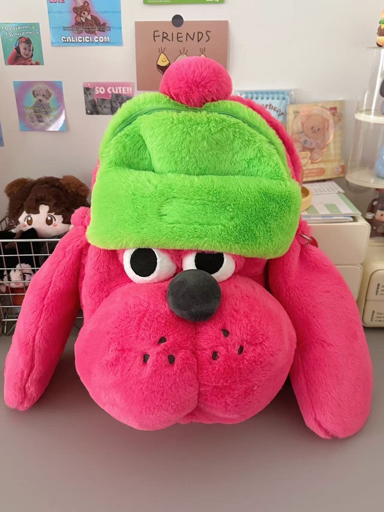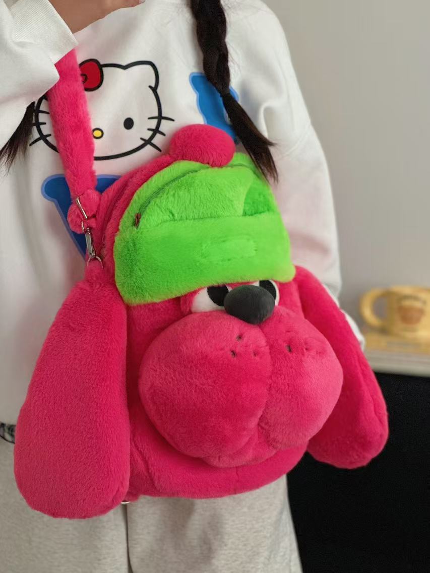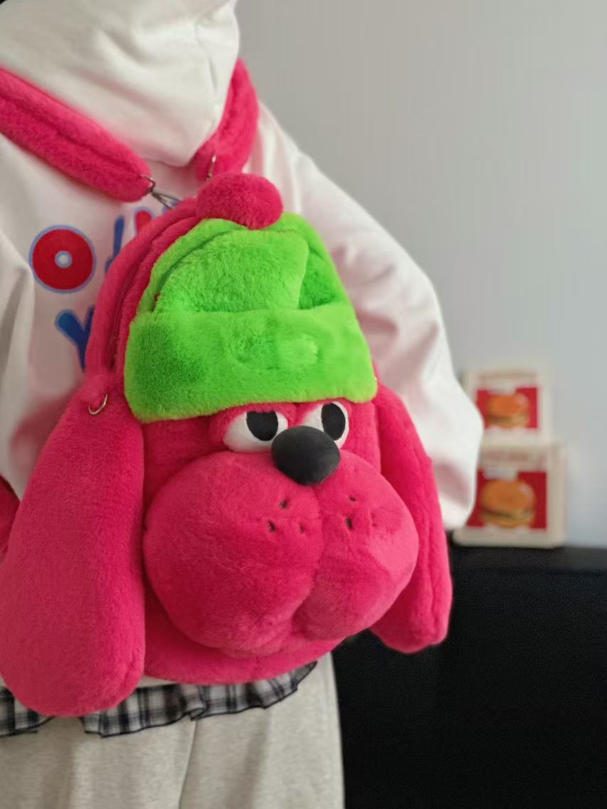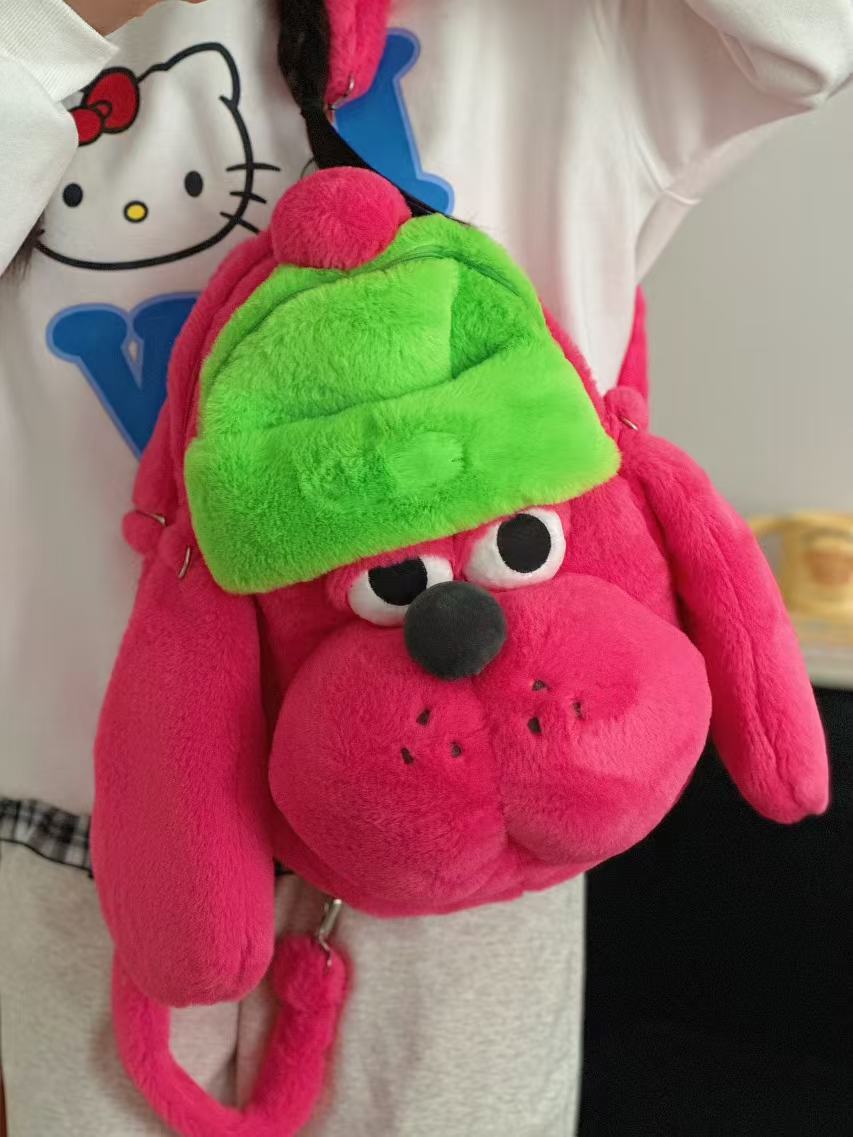 슈퍼 귀여운 모리 스타일 만화 핑크 뚱뚱한 개 인형 대용량 봉제 배낭 귀여운 소녀 통근 배낭스토어 가기