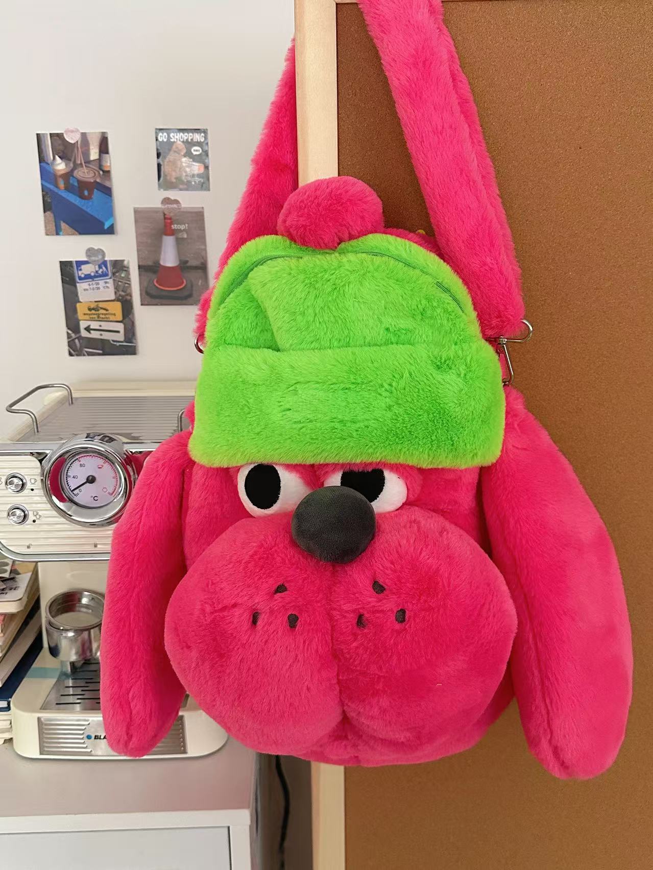 슈퍼 귀여운 모리 스타일 만화 핑크 뚱뚱한 개 인형 대용량 봉제 배낭 귀여운 소녀 통근 배낭