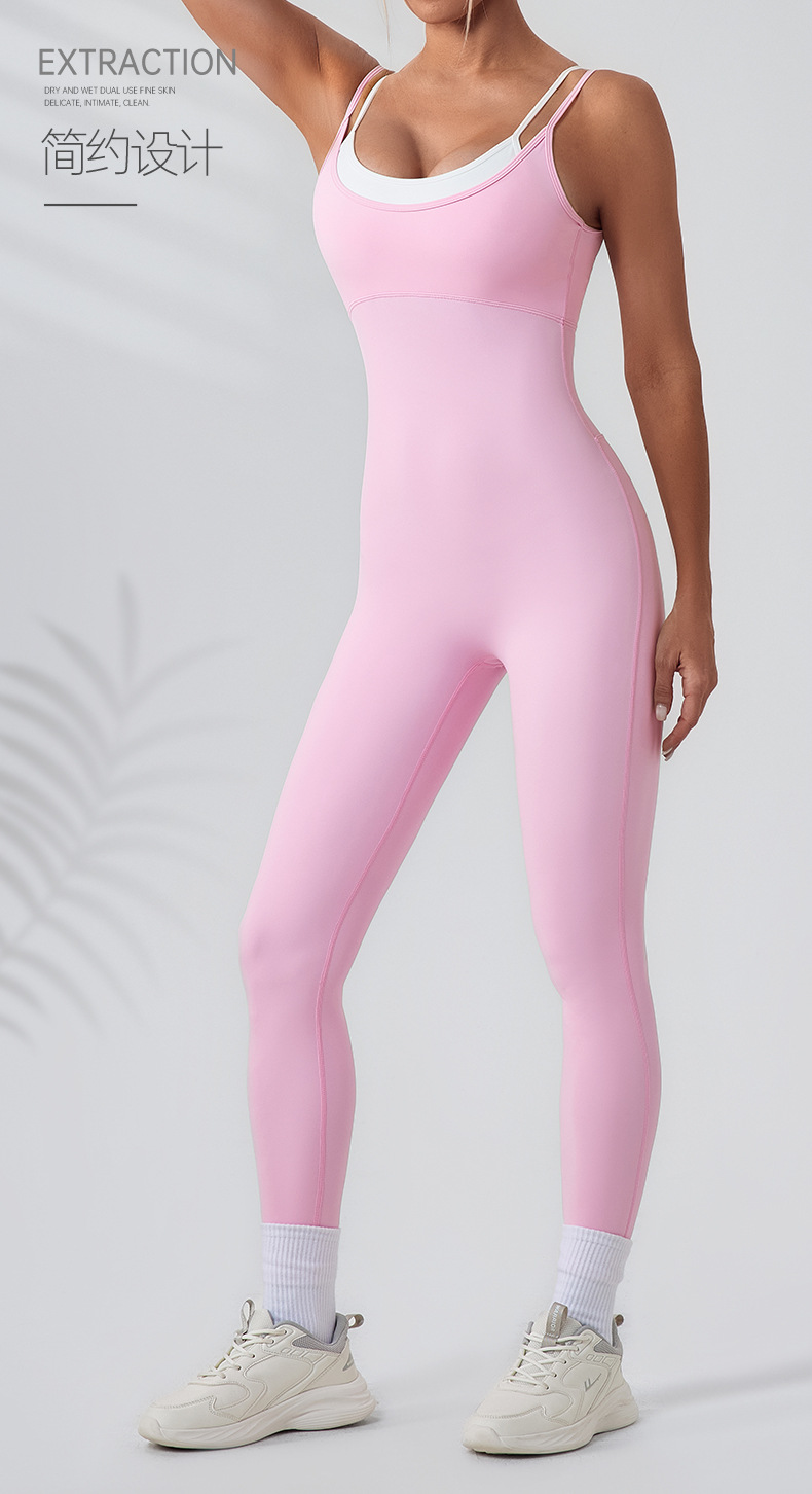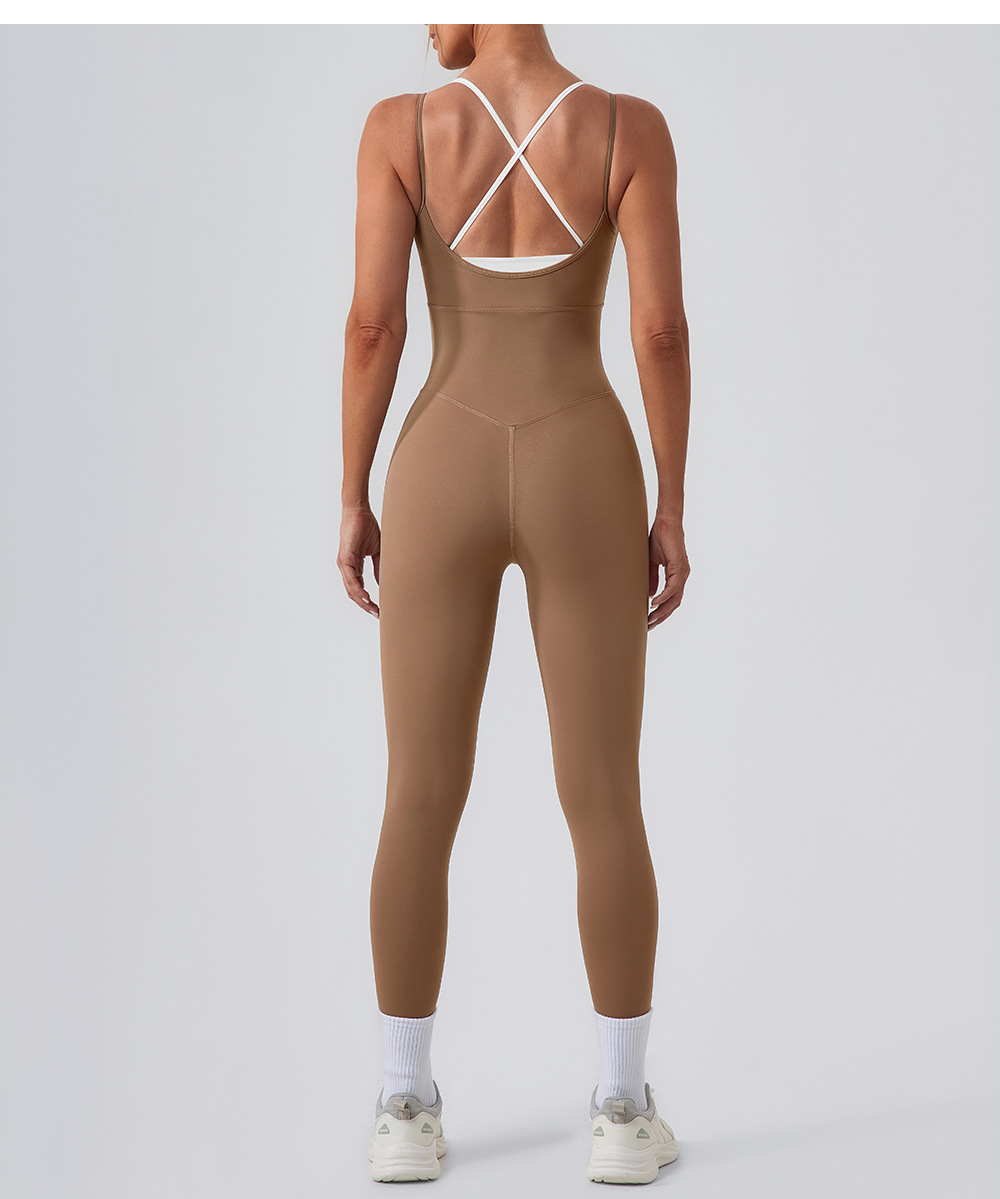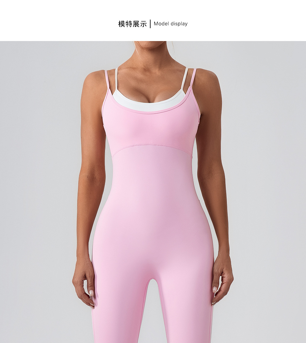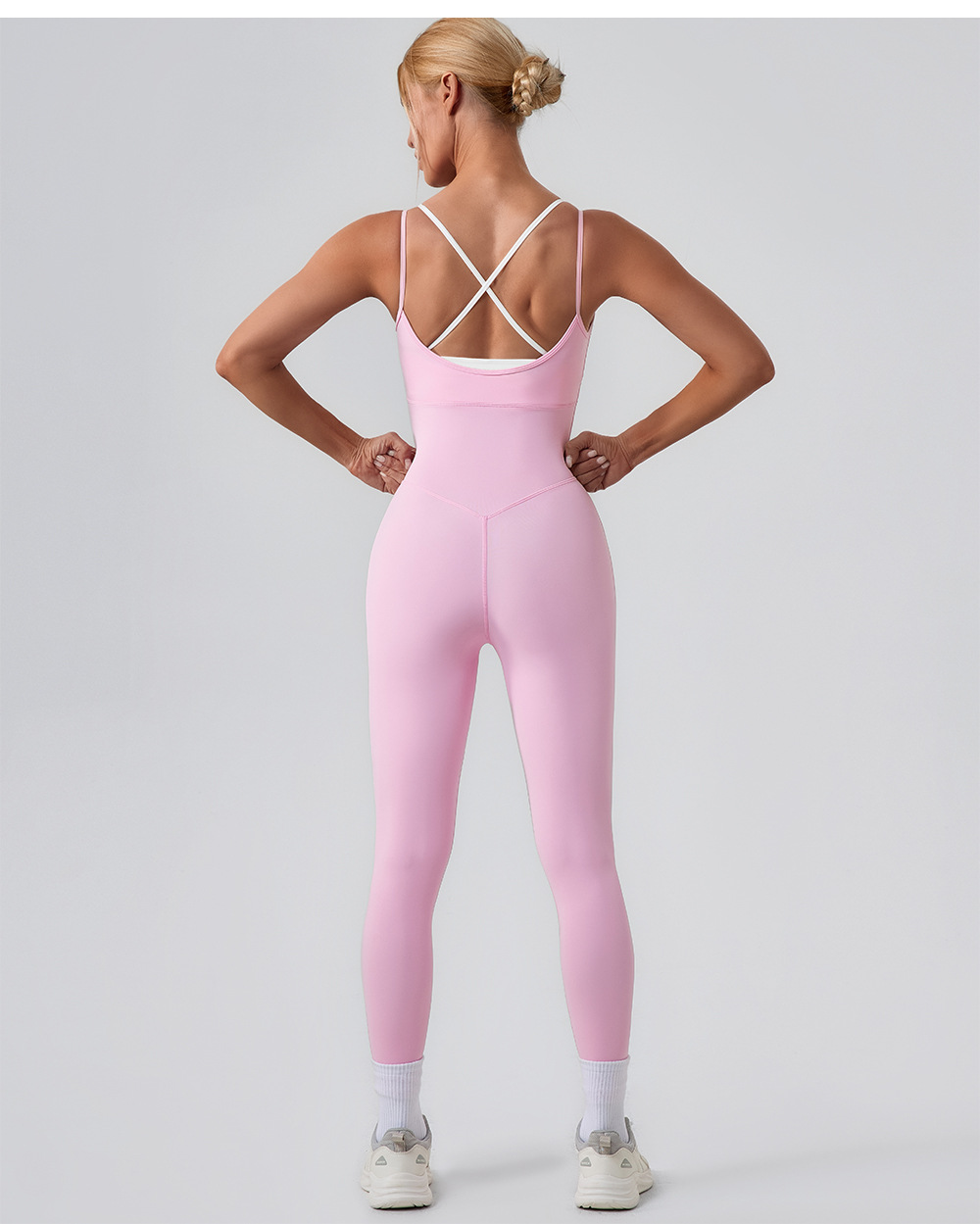 유럽과 미국의 크로스보더 투피스 배색 서스펜더 스포츠 점프수트, 원피스 요가복, 등이 없는 아웃도어 점프수트, 타이트한 핏