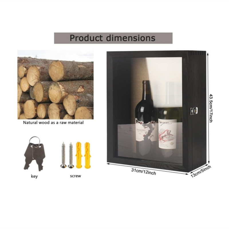 나무 와인 병 상자 와인과 샴페인 저장 상자 벽걸이 바 와인 병 디스플레이 캐비닛 아크릴 단단한 나무 저장 상자