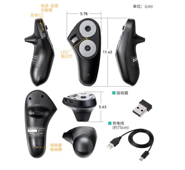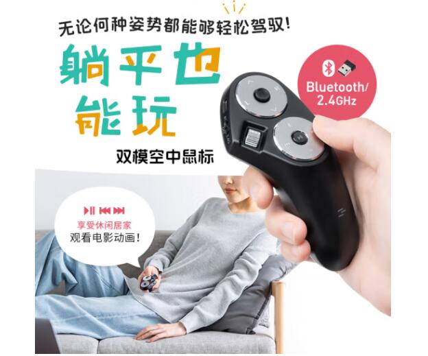SANWA SUPPLY双模空中鼠标 多功能懒人遥控鼠标 手持小鼠标 双面板 附滚轮 多媒体漫画电子书演讲优先等适用 黑色